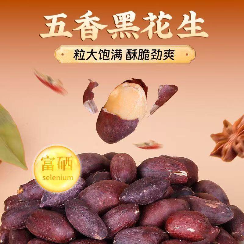 五香黑花生米富硒黑花生米紫皮烤花生豆下酒菜炒豆类追剧零食特价