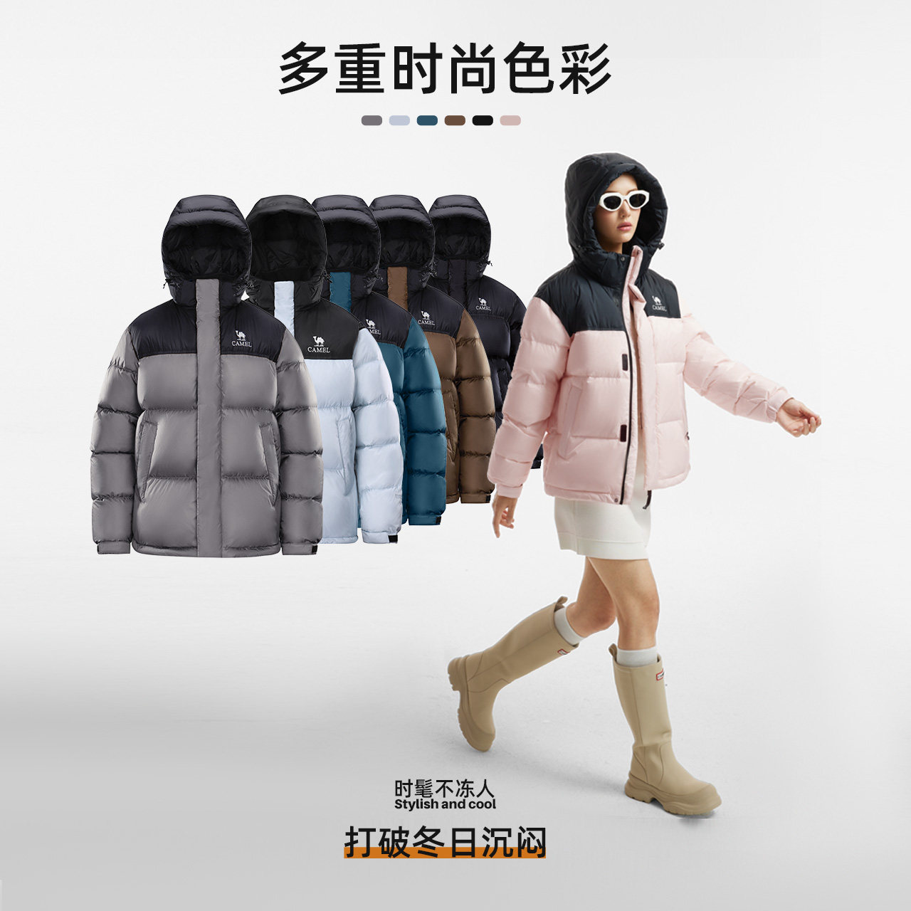 【骆驼小太阳】短款羽绒服女装冬季情侣加厚连帽羽绒外套面包服女