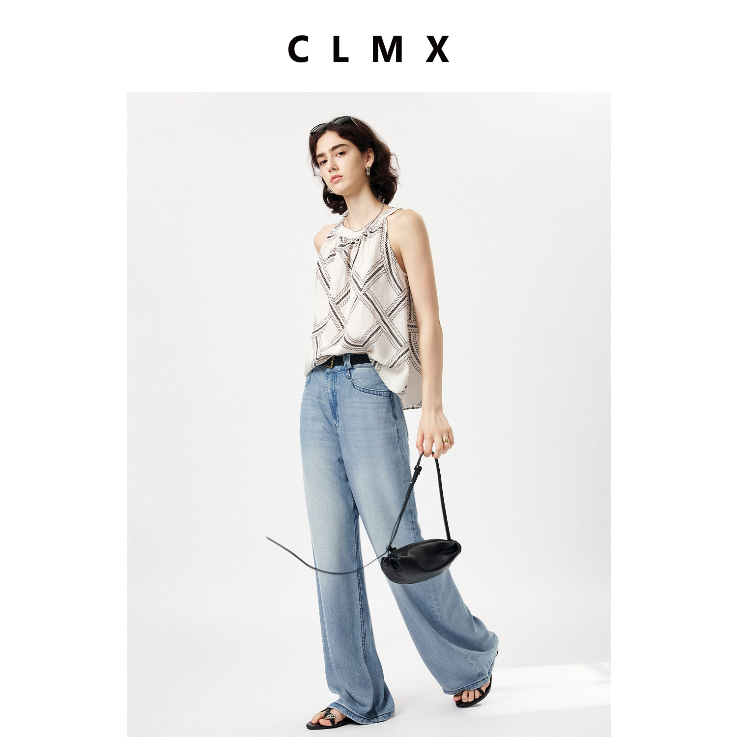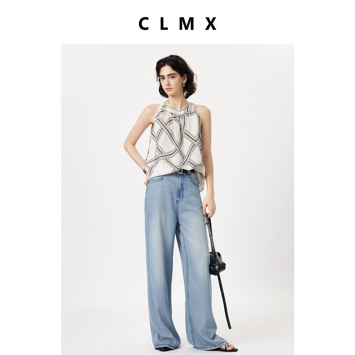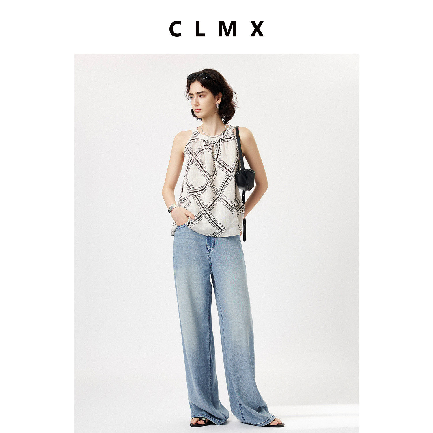 CLMX通勤吊带背心线描草绳印花莱赛尔亚麻混纺面料无袖上衣女