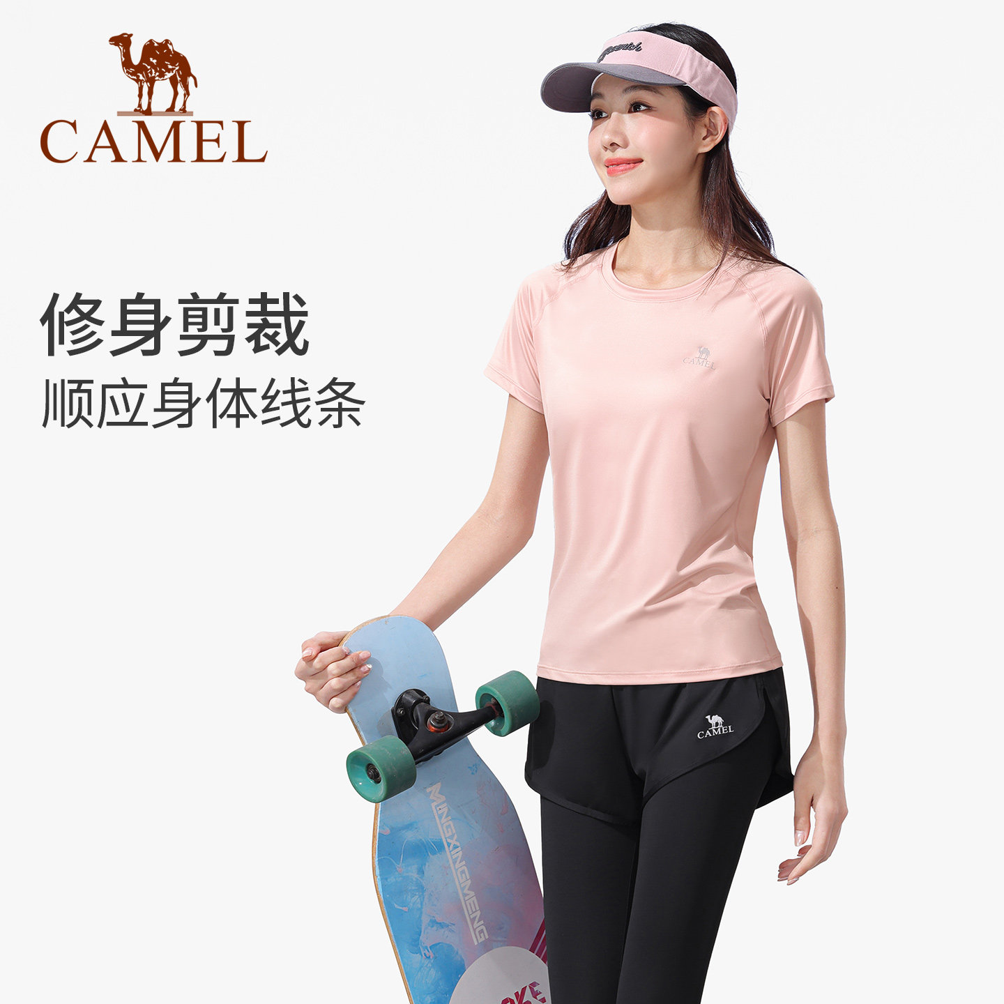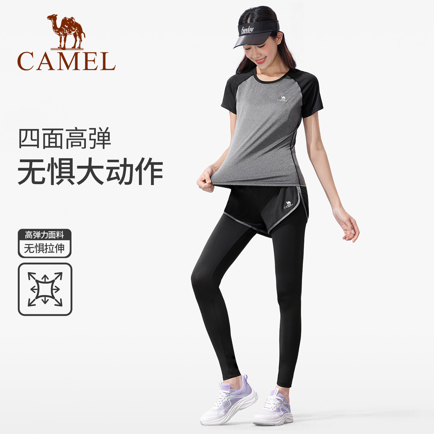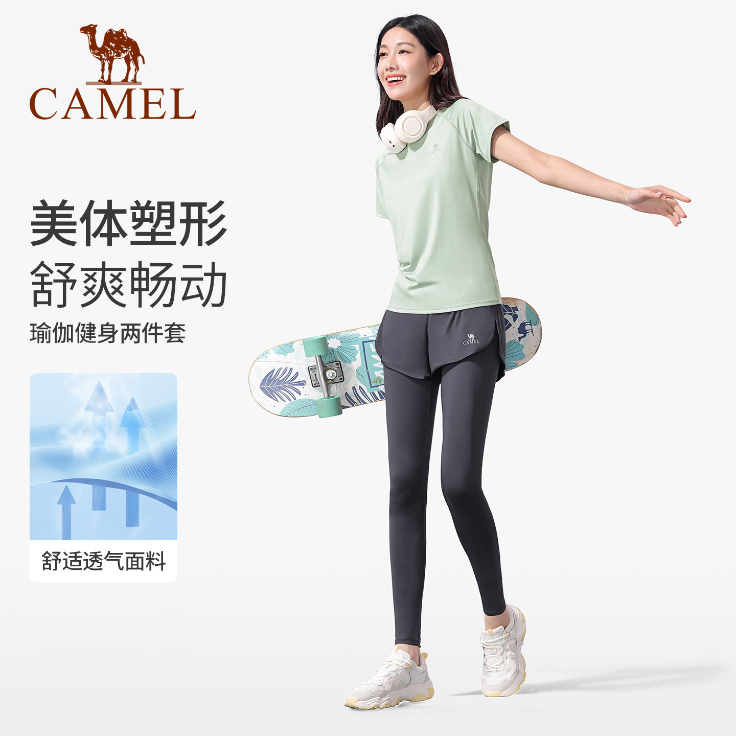 骆驼瑜伽服女士款套装春夏跑步服上衣健身服长袖休闲运动服两件套