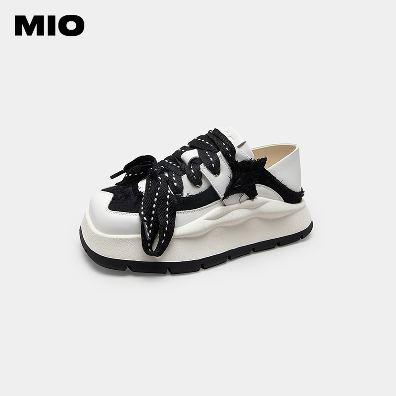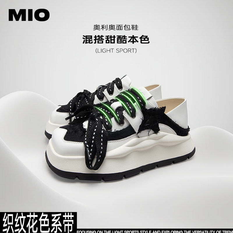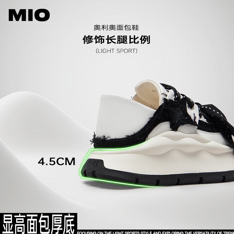 MIO米奥圆头中跟面包鞋时髦小白鞋个性休闲厚底板鞋女鞋溶解鞋