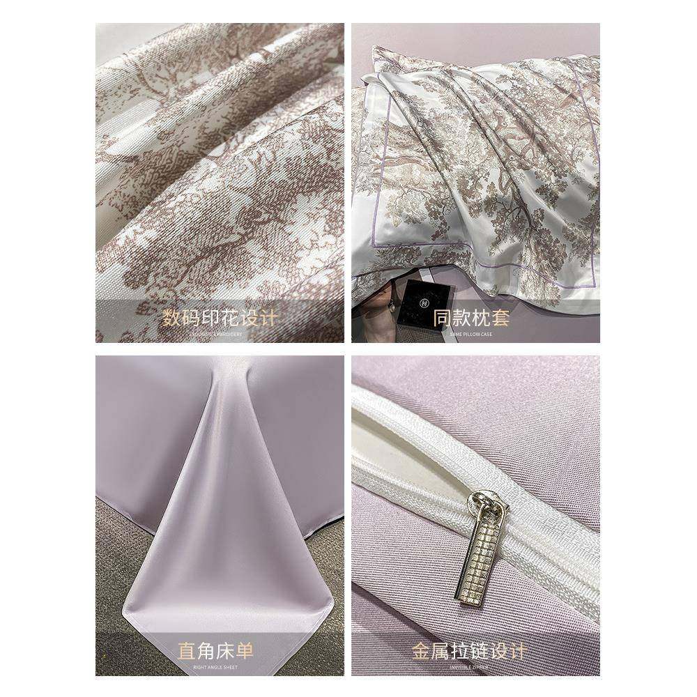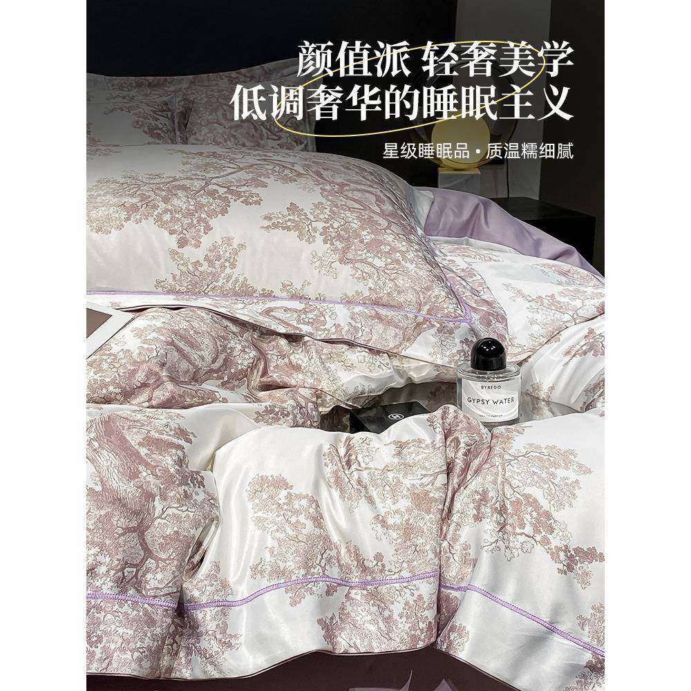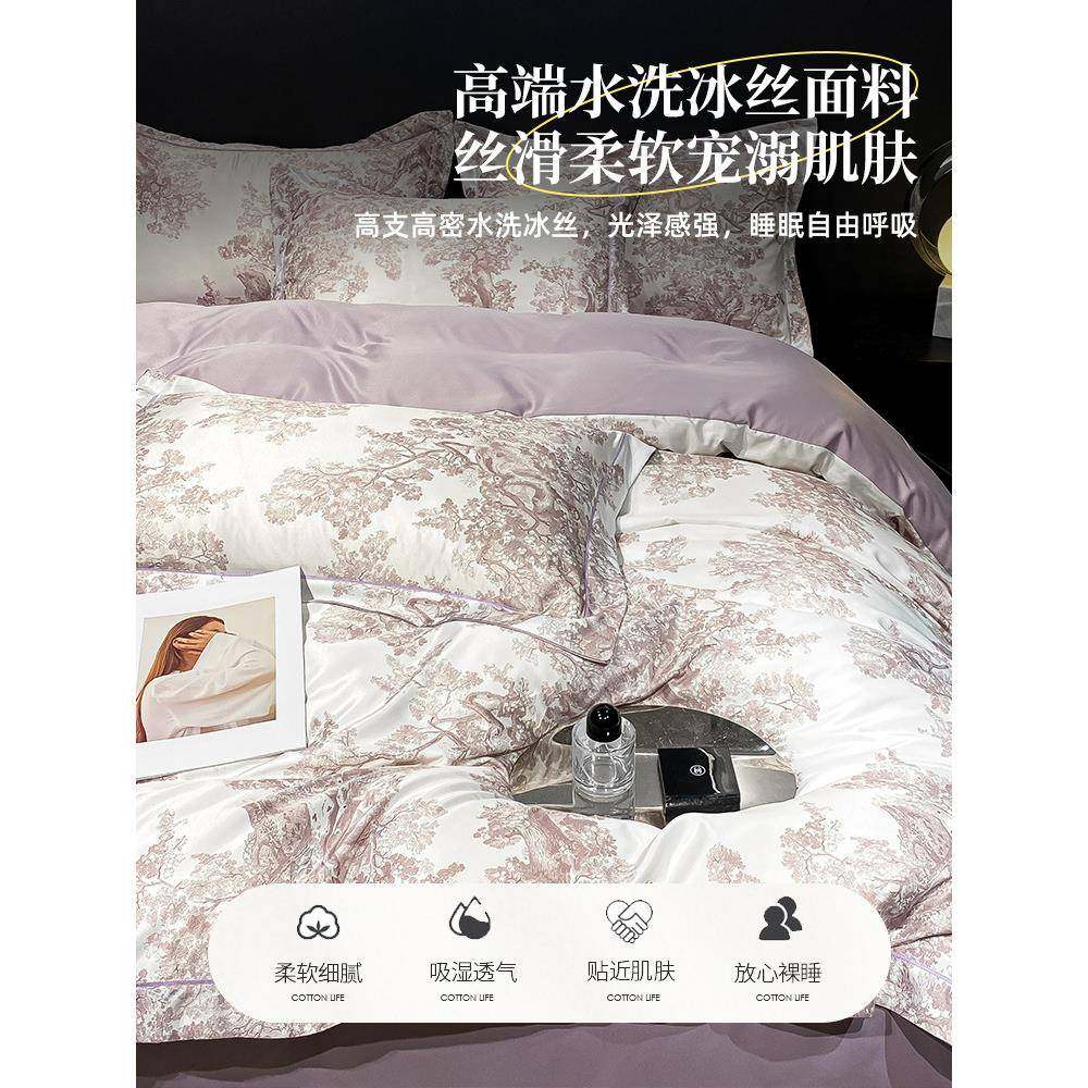 轻奢感被罩水洗真丝四件套夏天床品冰丝被套丝滑裸睡床单床笠其他