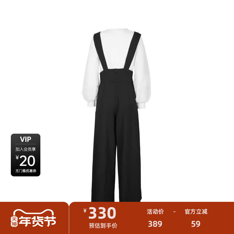 【秒杀】sdeer圣迪奥女装法式泡泡袖网纱衬衫背带裤套装S243Z1402