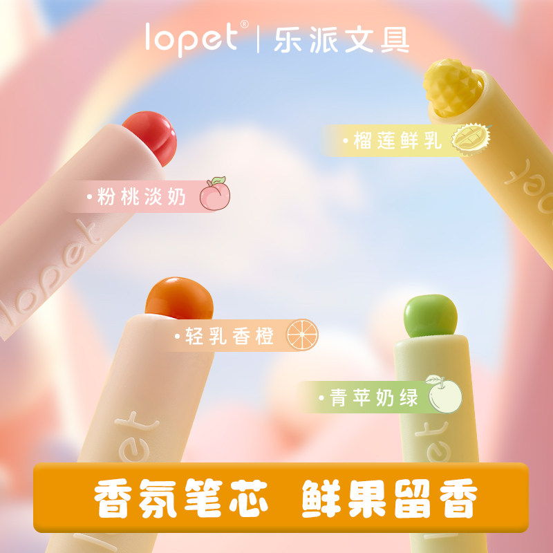 lopet乐派鲜果留香扭扭笔新款香味水果合集ins国色茶香旋转出芯中性笔学生高颜值可爱学生速干ST刷题0.5黑笔