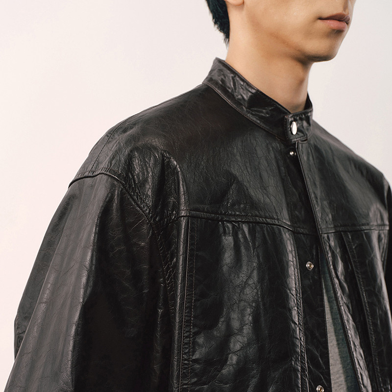 BODYDREAM复古做旧皮衣外套男街头廓形休闲通勤翻领夹克/挺阔抗皱