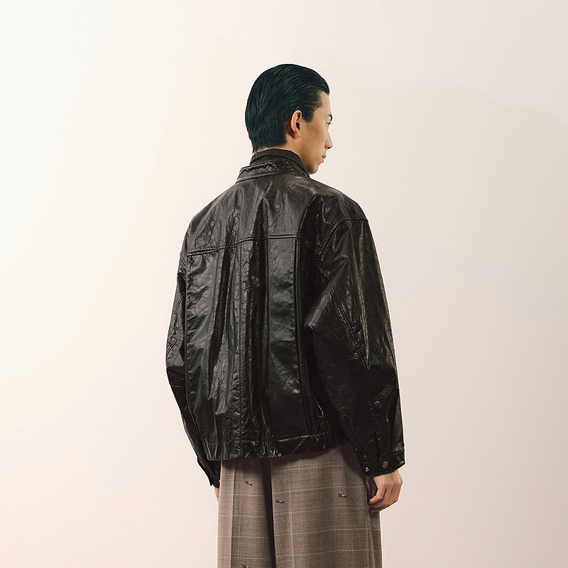[商场同款]速写男装2026春新皮衣立领短款蜡感夹克外套9Q1A13840
