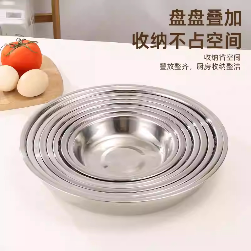 不锈钢盘子圆盘平底浅盘菜盘家用餐盘小碟子圆形家用蘸料盘