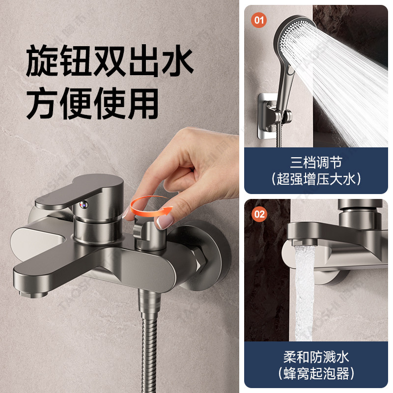 全铜混水阀淋浴龙头花洒沐浴套装浴室浴缸开关三联冷热水龙头简易