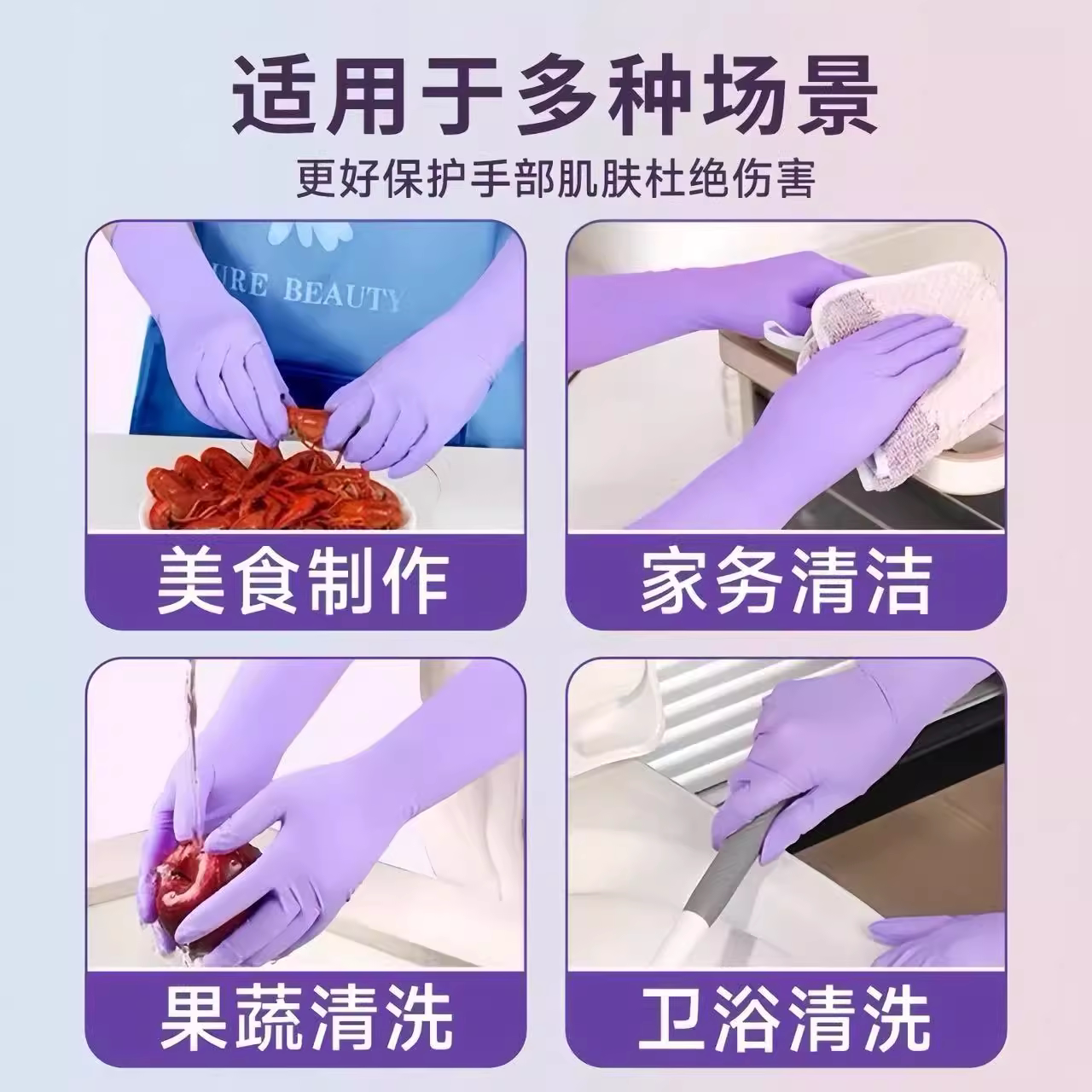一次性丁腈家务手套食品级防水厨房加长洗碗洗衣服专用清洁耐用型