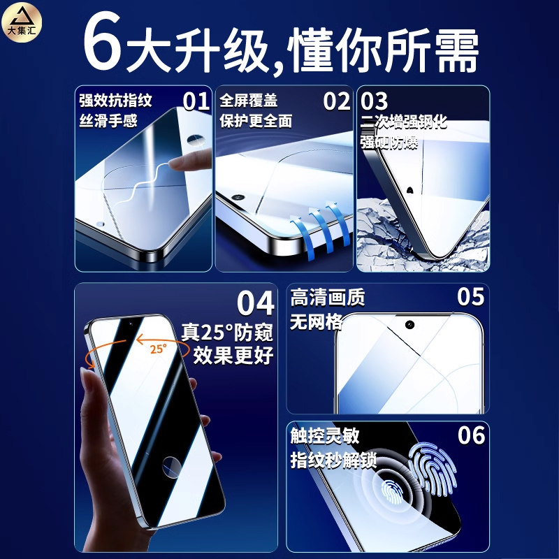 [不沾指纹]适用iPhone17/16钢化膜苹果15/14手机13promax防窥12全屏XR/xsmax全包11贴X防摔8por高清plus