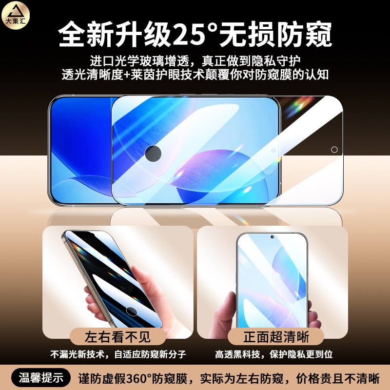 大集汇适用小米14钢化膜小米13防窥膜米15防窥手机膜全屏覆盖防偷窥防窥屏指纹解锁米xiaomi十四屏幕保护贴膜