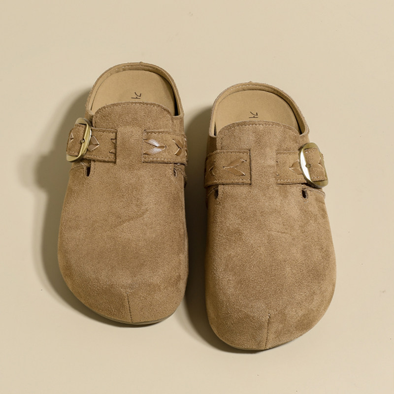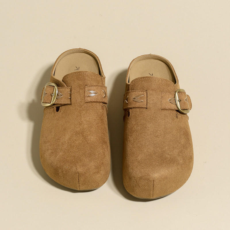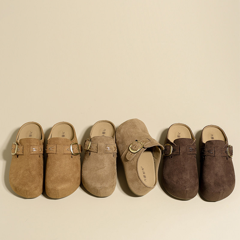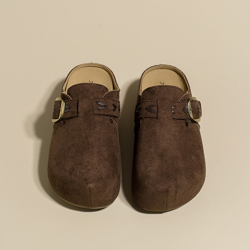 真皮包头拖秋季2025年新款勃肯鞋圆头拖鞋平底外穿休闲半拖懒人鞋