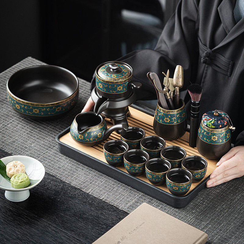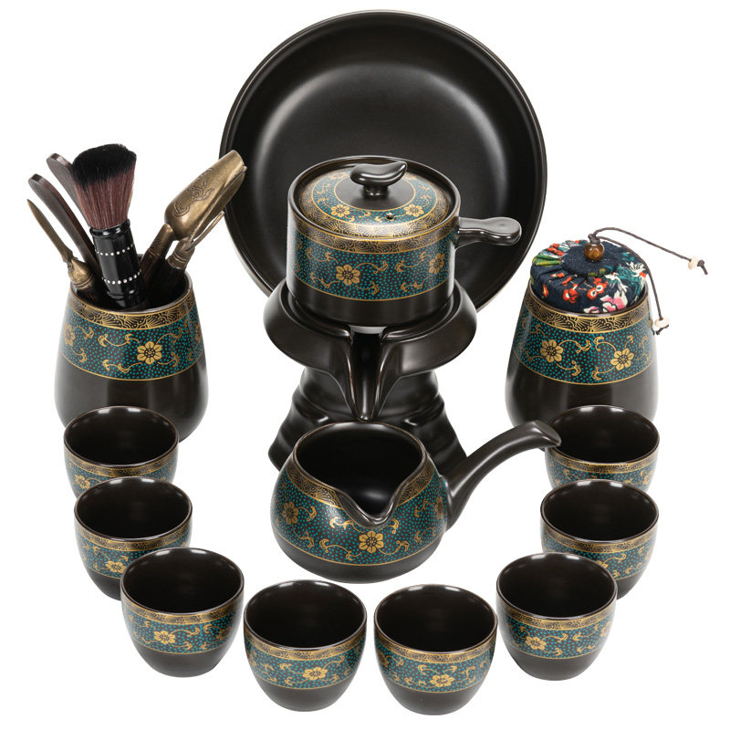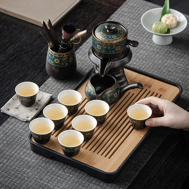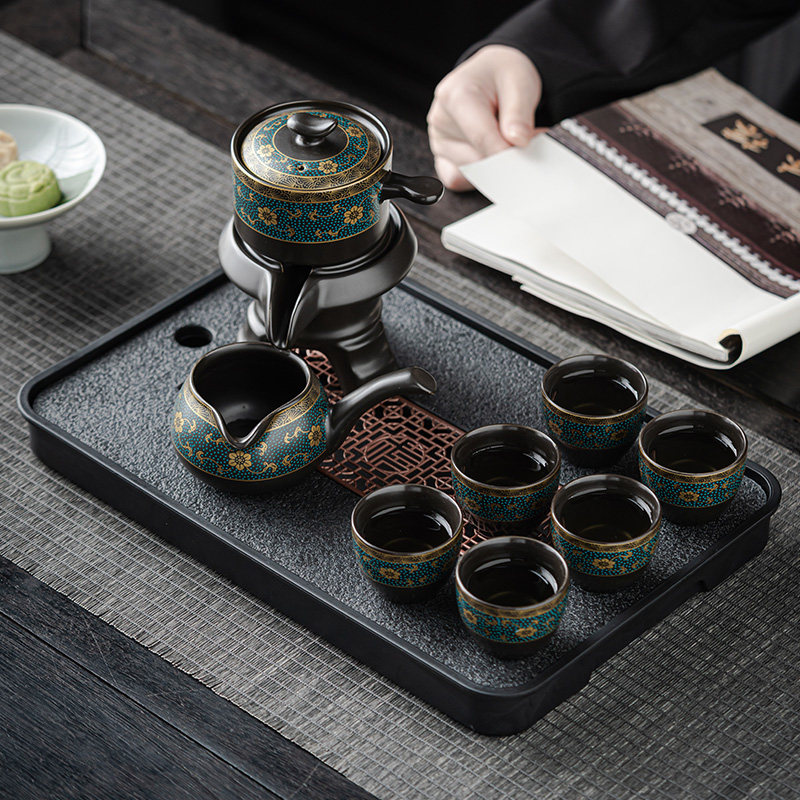 新款懒人半自动功夫茶具套装家用办公旋转石磨泡茶壶喝茶杯冲茶器