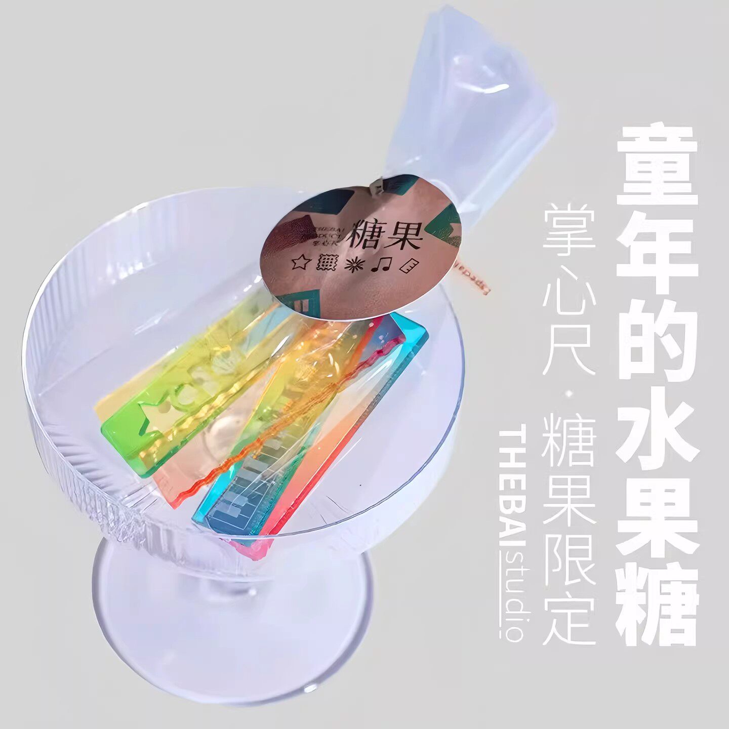 称心如意尺掌心尺糖果色手帐本迷你刻度尺透明波浪彩色小巧直尺子