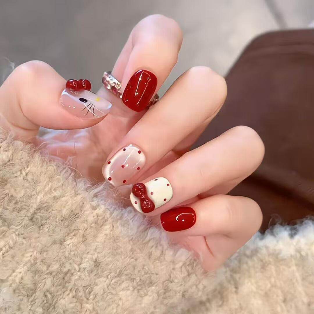 2025新款波点贴片显白蝴蝶结美甲贴