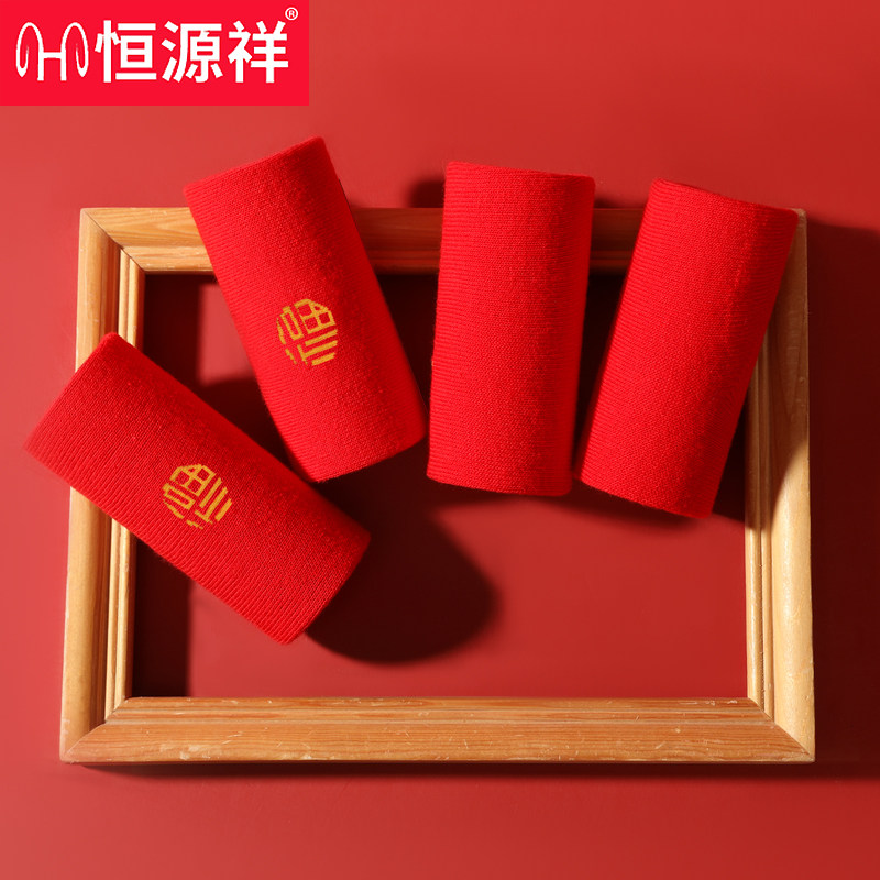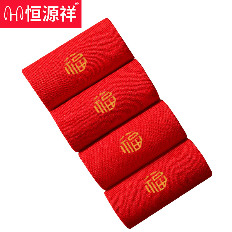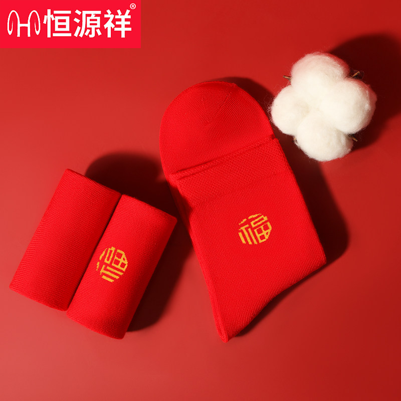 恒源祥本命年袜子男士鸿运款红色男女结婚情侣纯棉中筒属马抗菌袜
