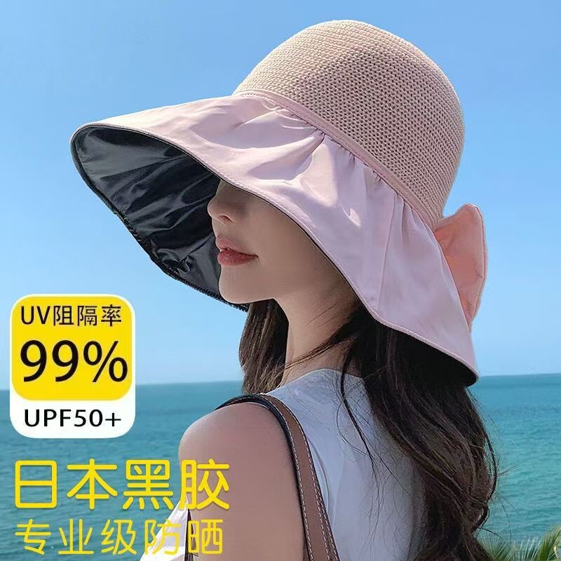 防晒帽女防紫外线太阳帽可折叠黑胶渔夫帽遮脸海边大帽檐遮阳帽子