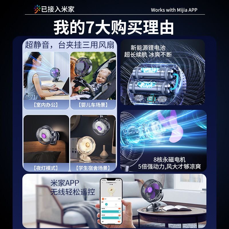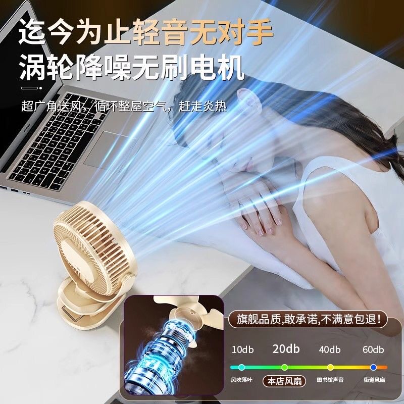 APP智能定时】2026新款桌面小风扇静音办公室桌上usb电风扇制冷学生宿舍床上摇头超强力长续航婴儿车夹扇小型