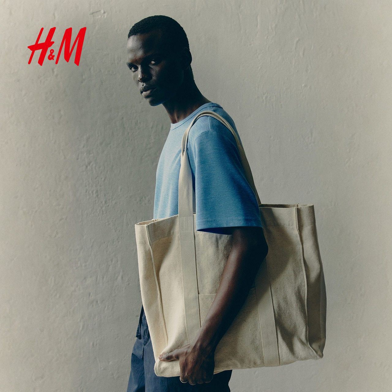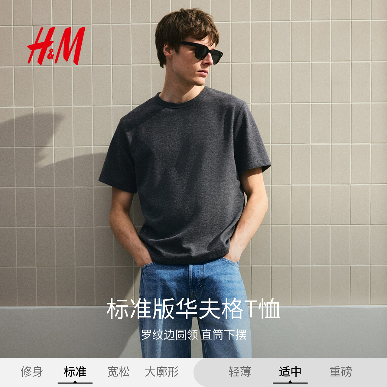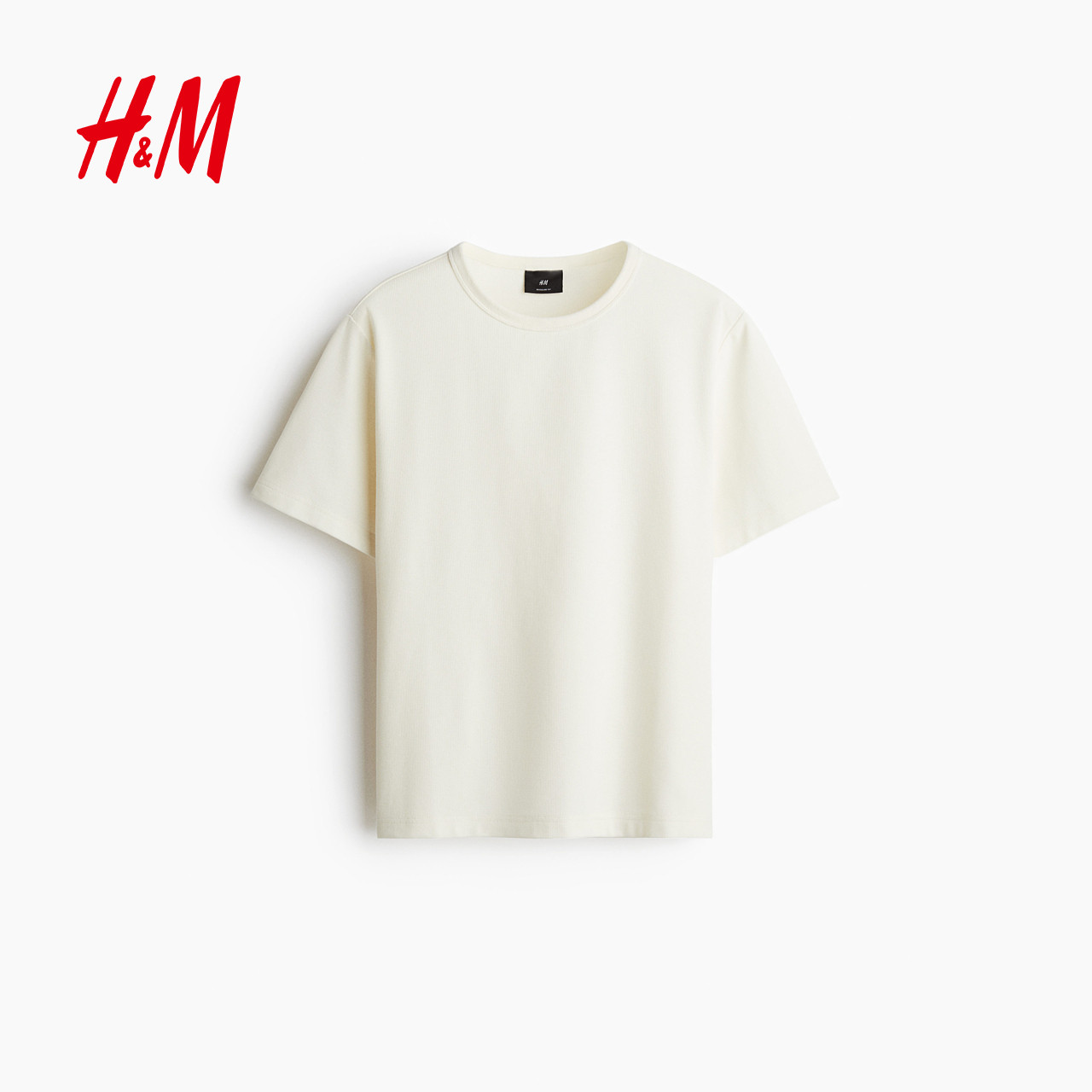 HM男装女装T恤春季简约华夫格圆领直筒短打底衫情侣装上衣1249530