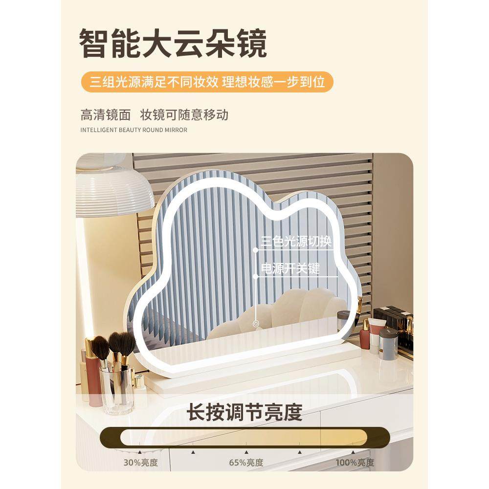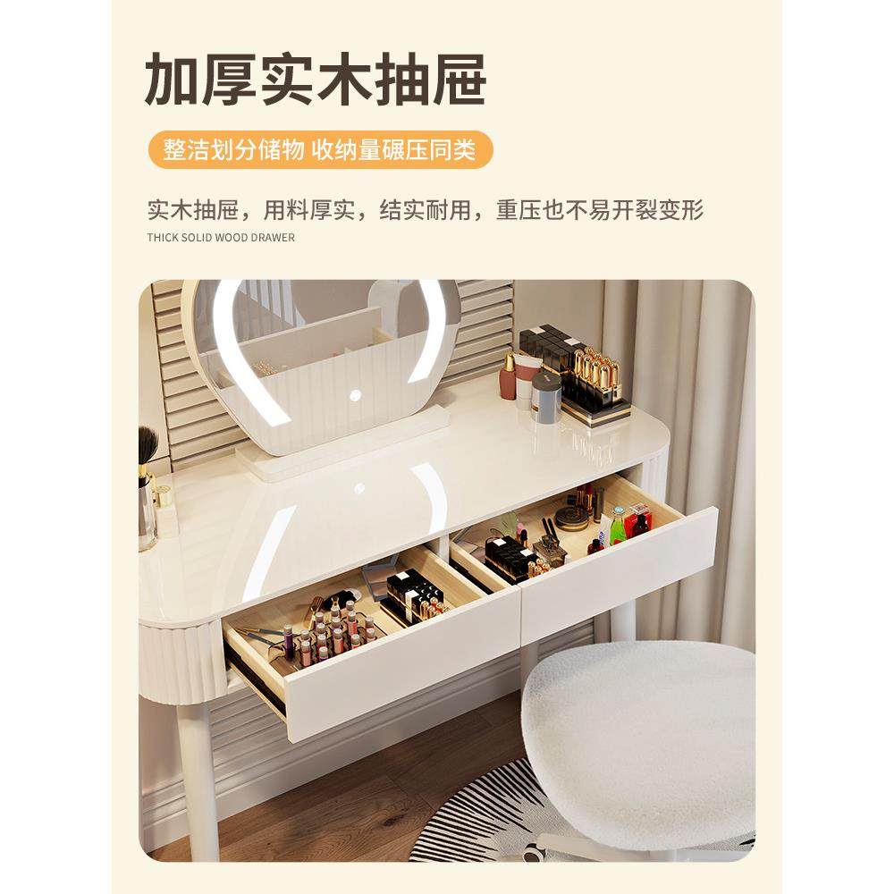 奶油风梳妆台卧室现代简约小户型化妆桌床头收纳斗柜书桌镜子一体