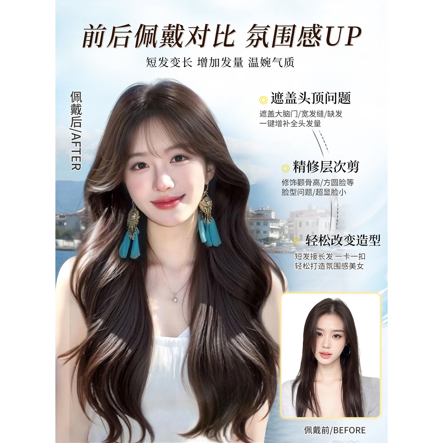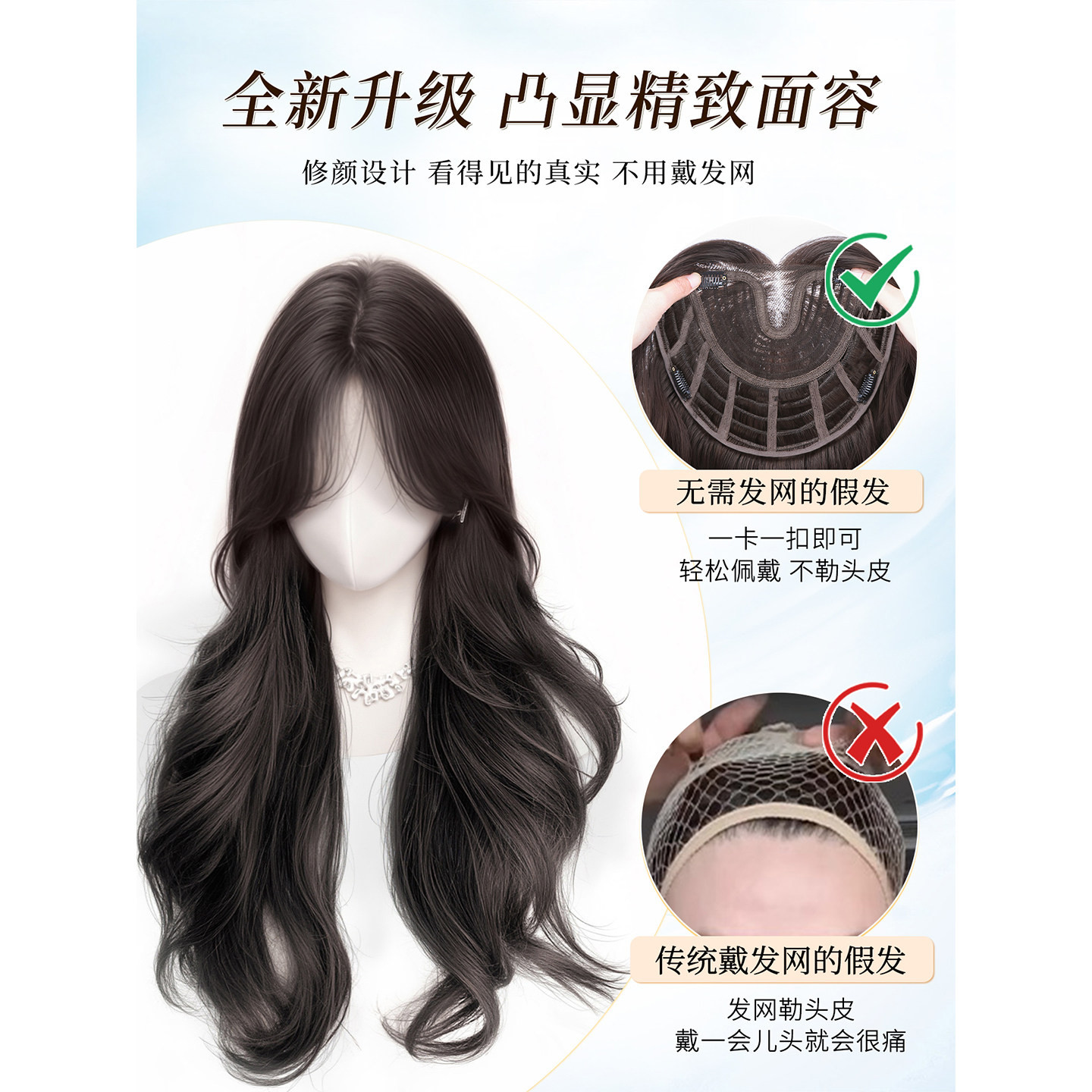 不用戴发网假发女片头顶补发增发量蓬松高颅顶大波浪长卷发假发套