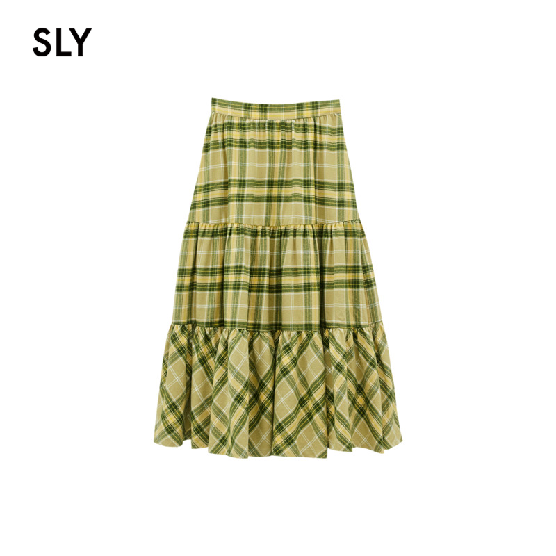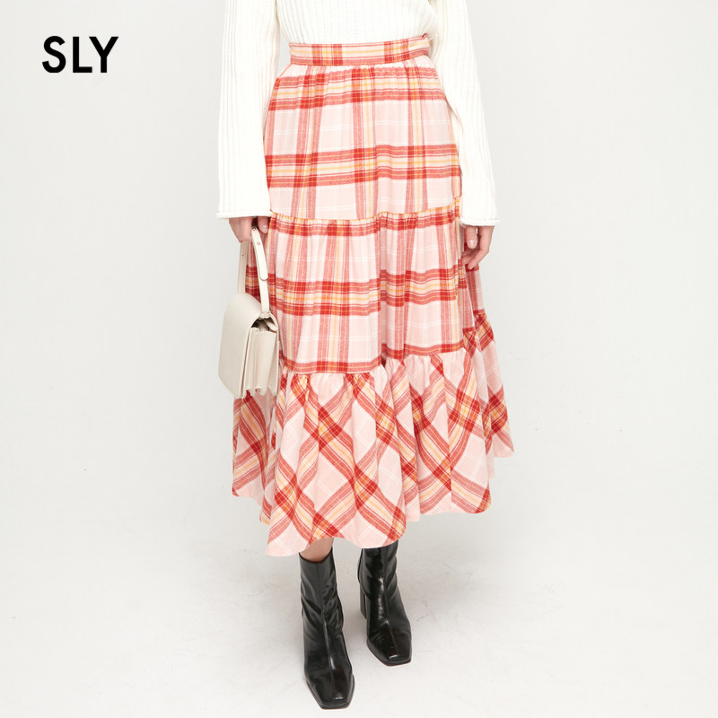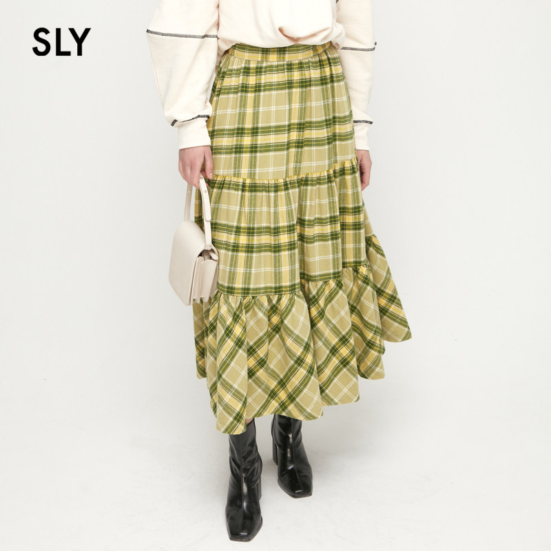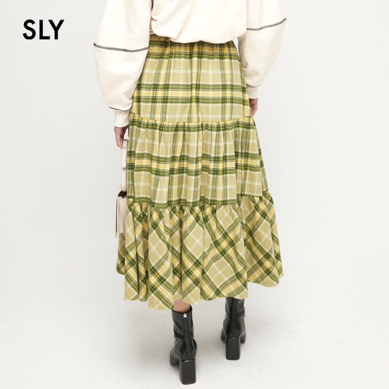 SLY 冬季新品英伦学院风复古格纹长款半身裙女C38GAL31-2890
