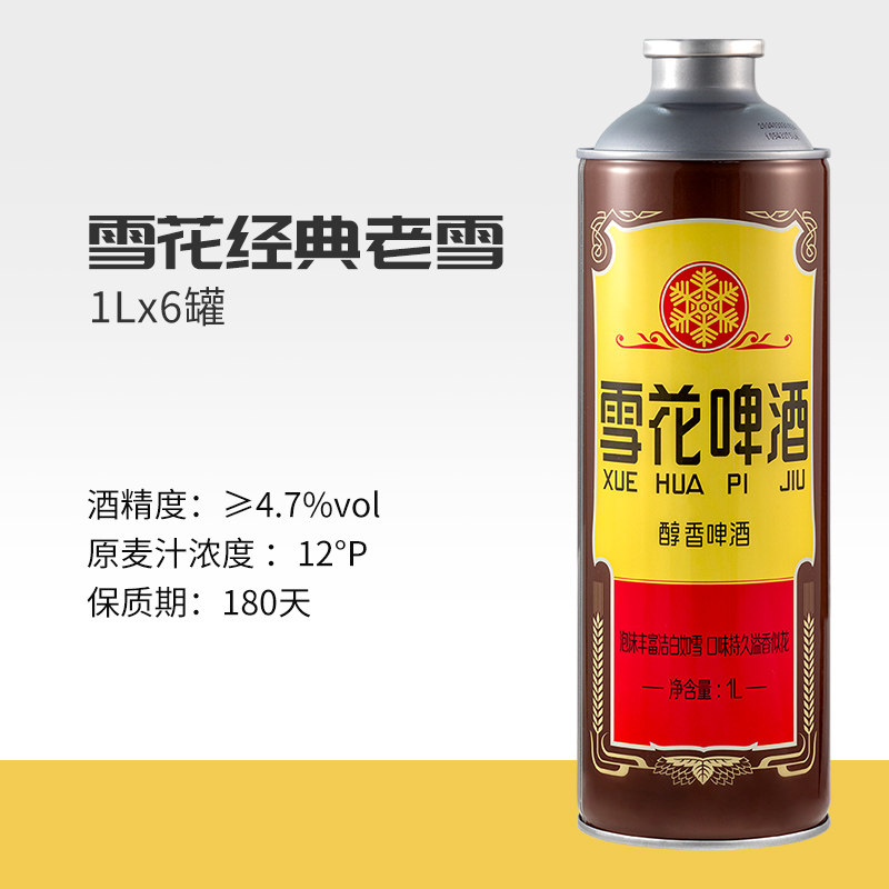 雪花啤酒经典沈阳老雪花12度1L*6罐香醇拉格【1L大容量】