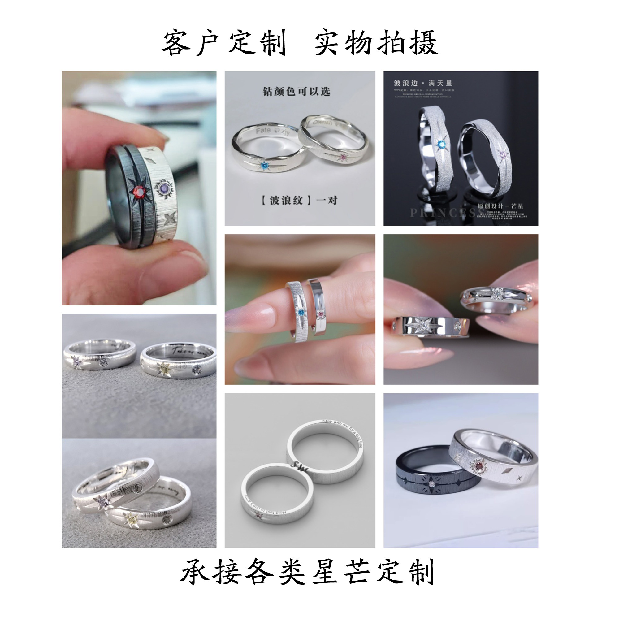 拉丝八芒星戒指999足银情侣对戒定制对戒情侣原创设计戒指520礼物