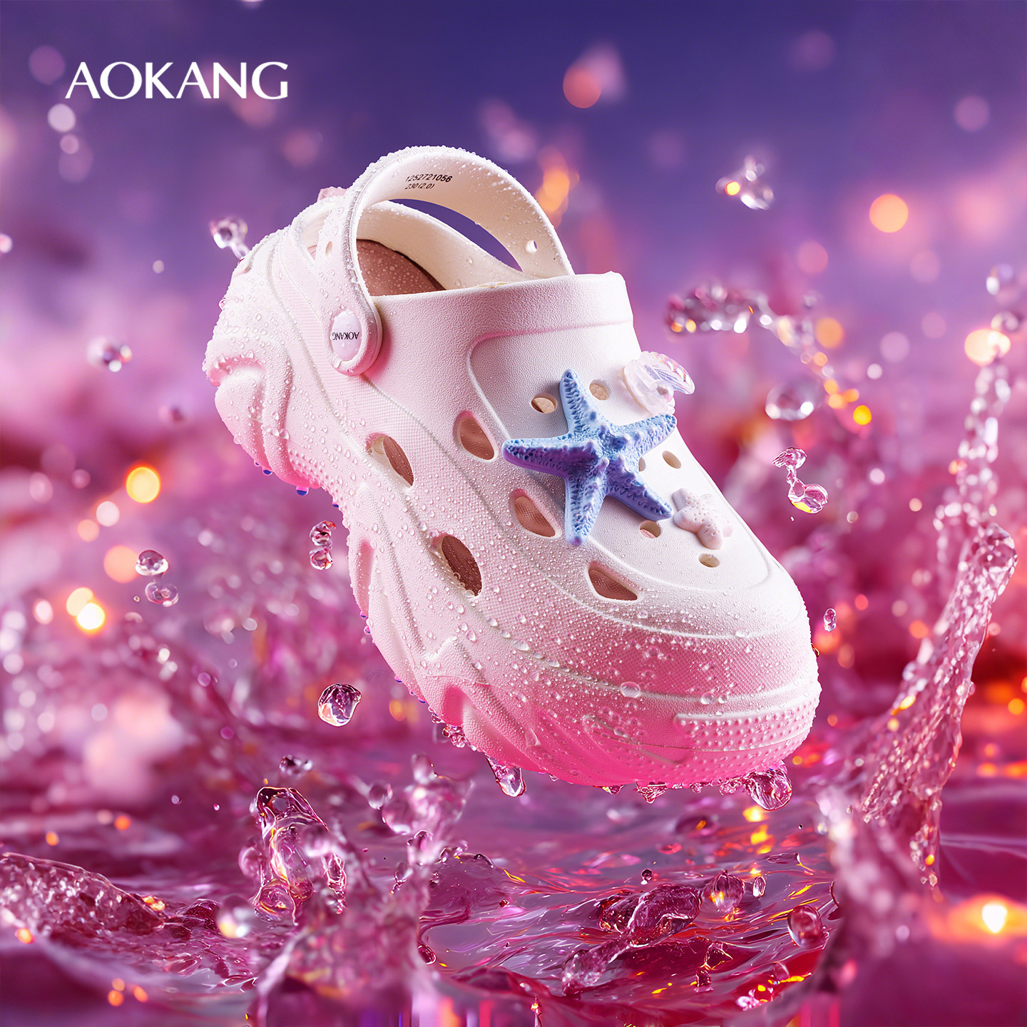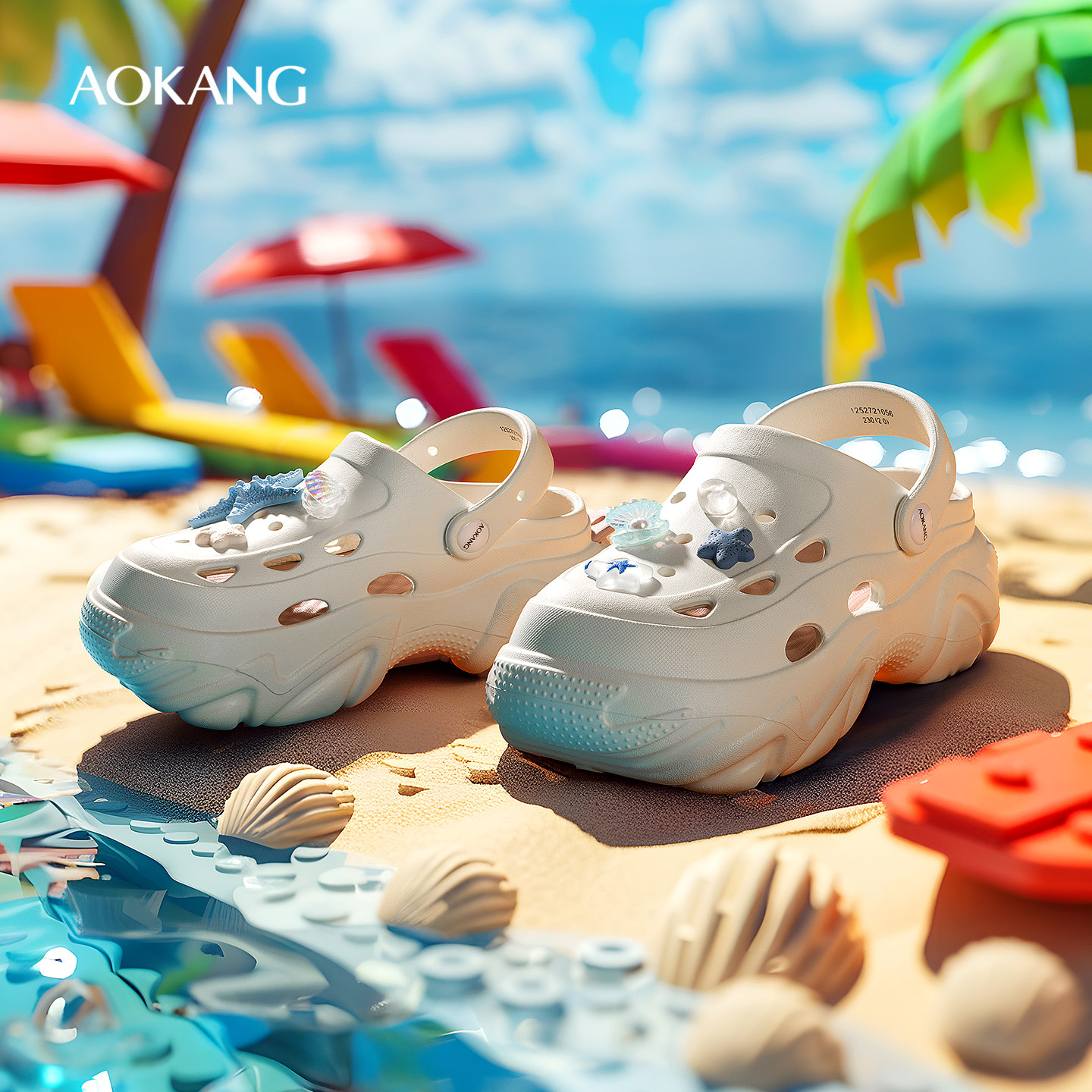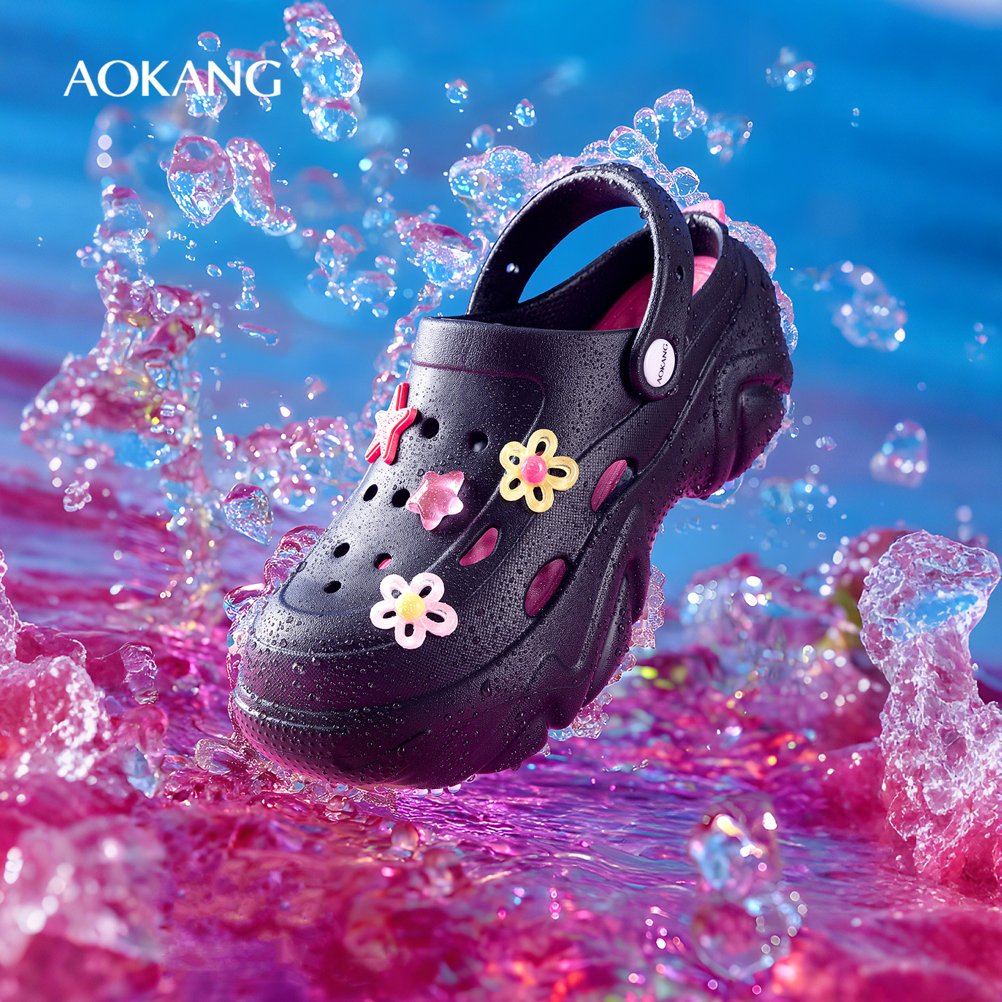 奥康 女鞋夏季纯色洞洞鞋户外包头拖厚底沙滩鞋门店发货