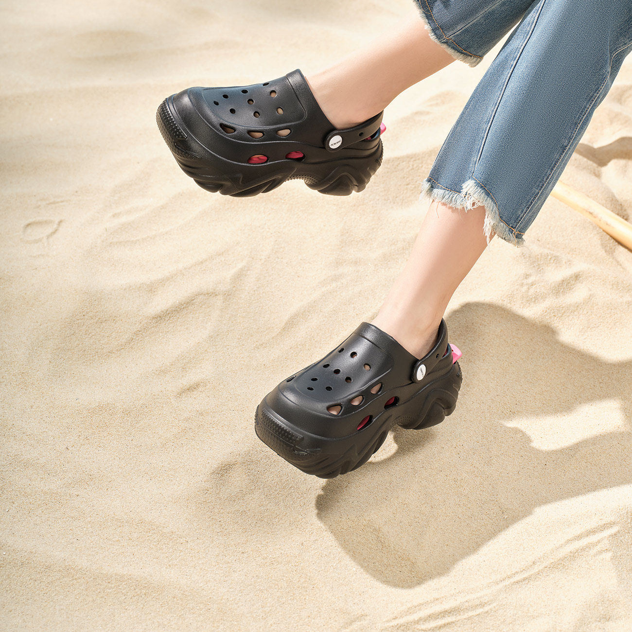 厚底洞洞鞋女款夏季外穿2026新款沙滩松糕婚纱增高跟凉鞋黑色拖鞋