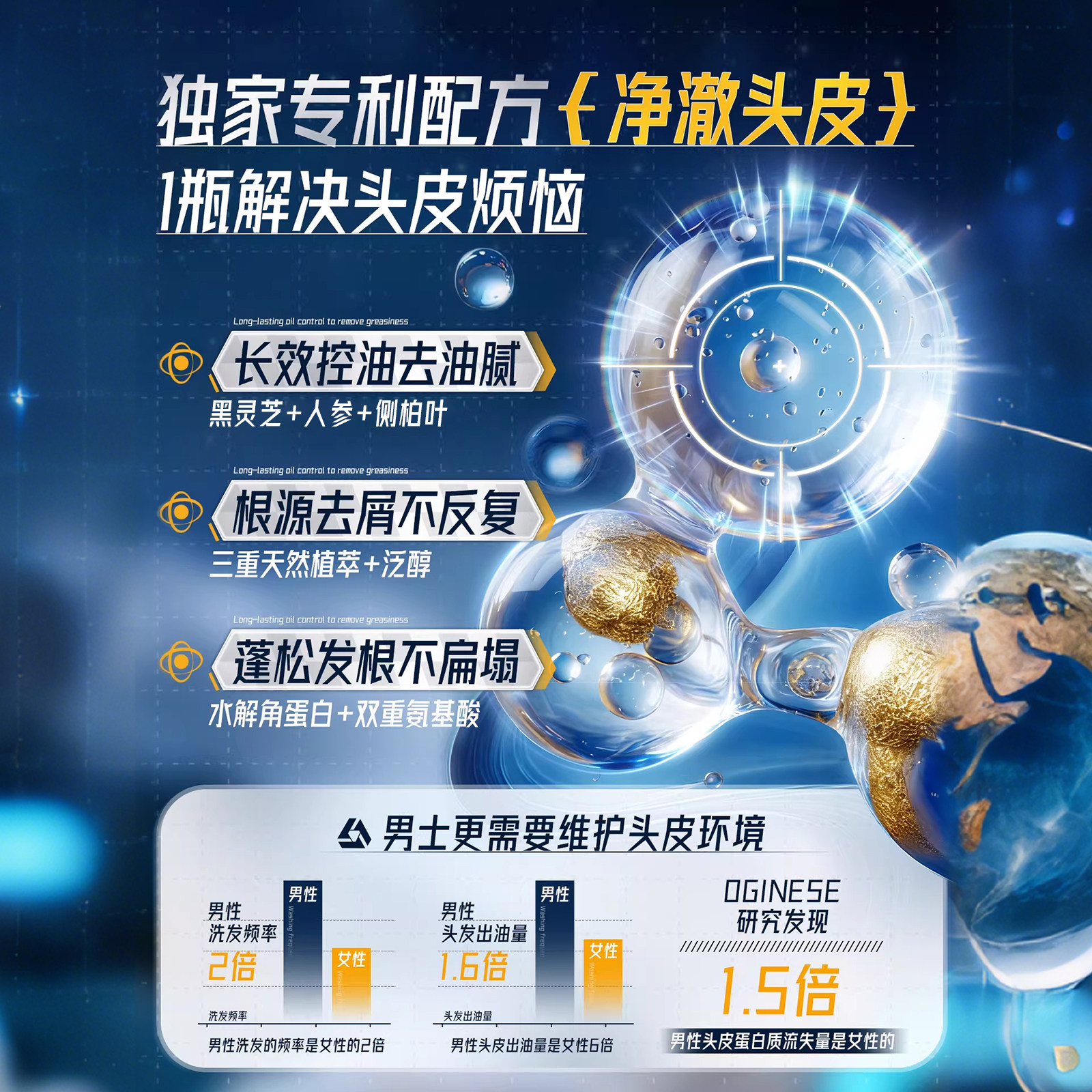 氨基酸角蛋白洗发水控油蓬松去屑止痒男士洗头膏品牌正品官方旗舰