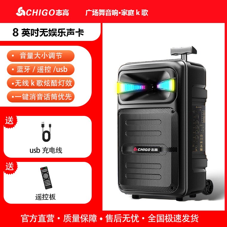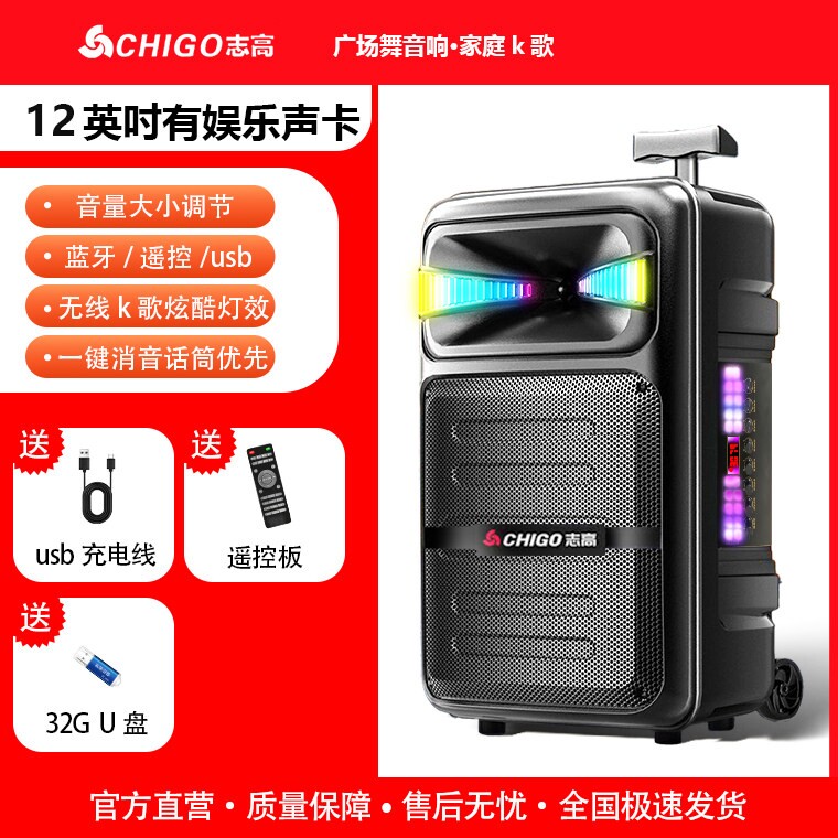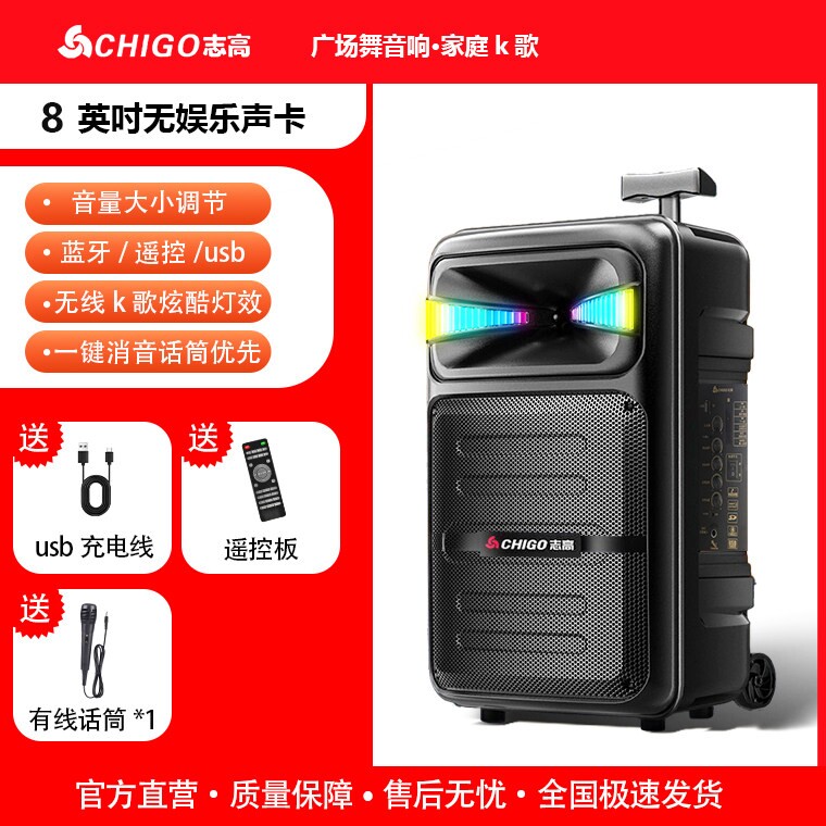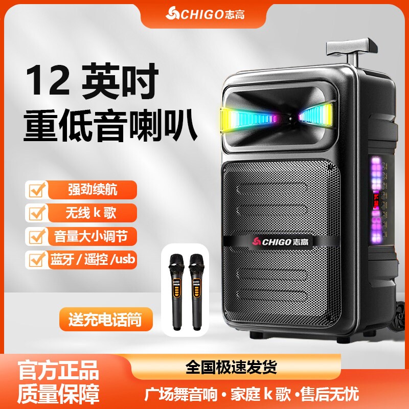 志高广场舞音响专业拉杆户外k歌话筒重低音大功率音箱便携式移动
