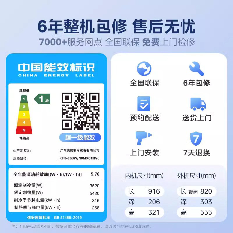 美的空调酷省电二代大1.5匹1P新一级能效变频省电挂机官方旗舰店