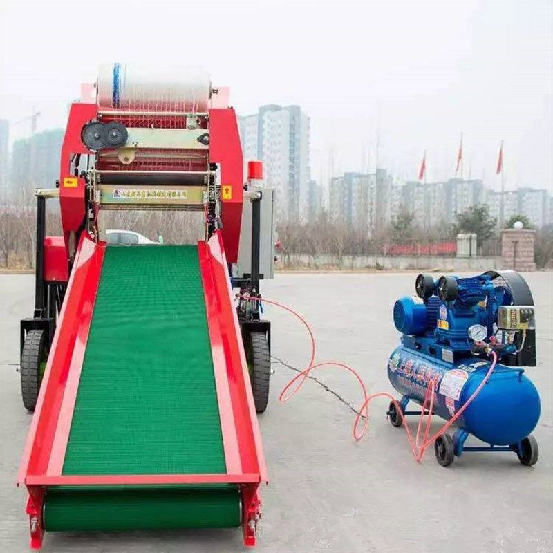 全自动牧草饲料打捆包膜机牛羊养殖草料压块机秸秆保鲜方捆打包机