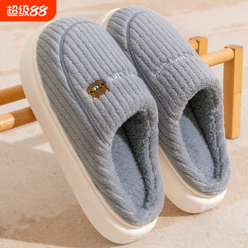 红豆踩屎感棉拖鞋女士秋冬季室内家居2025新款毛绒保暖情侣棉拖男