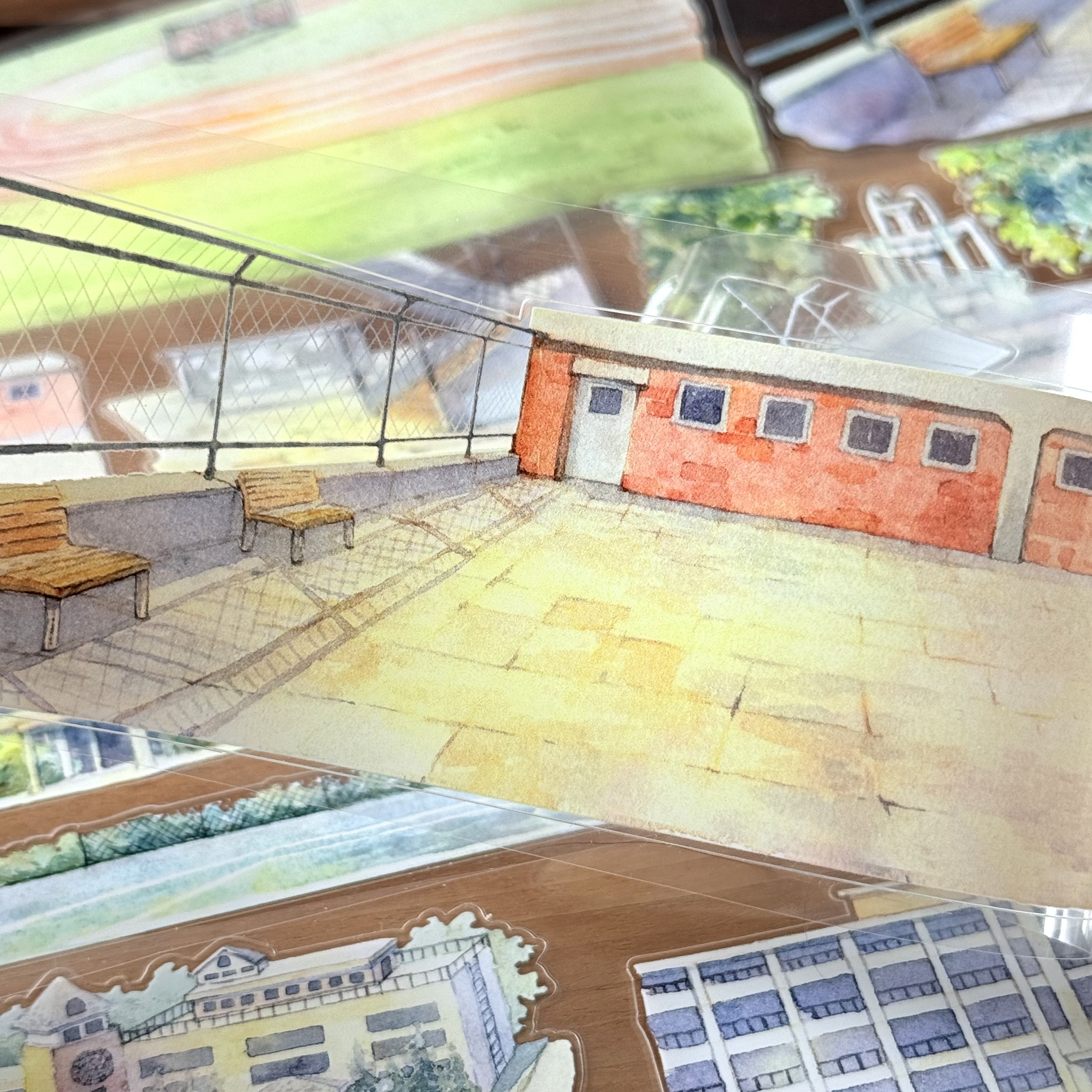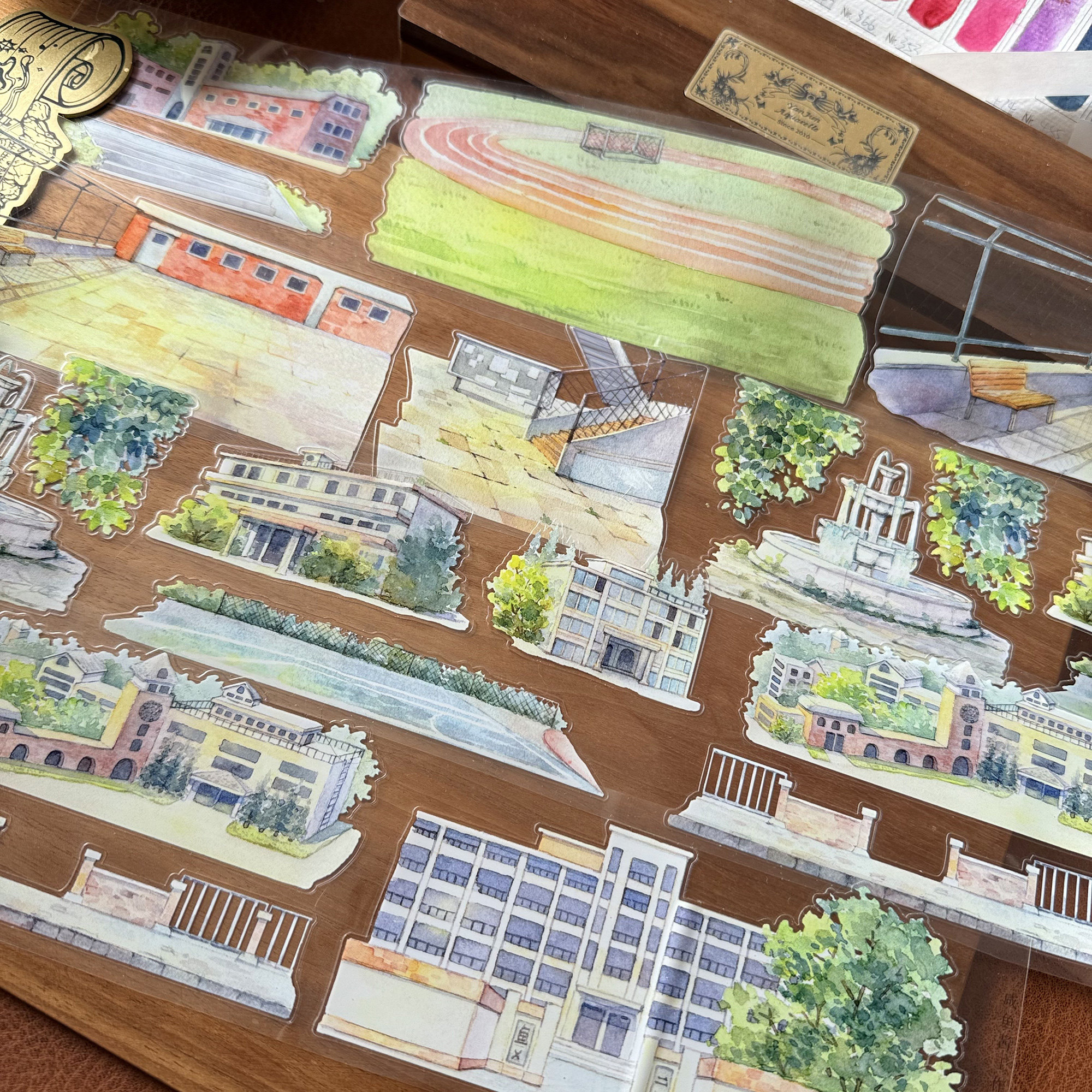 逐苒切膜PET/和纸造景胶带手账拼贴贴纸素材水彩风景咸鱼酱