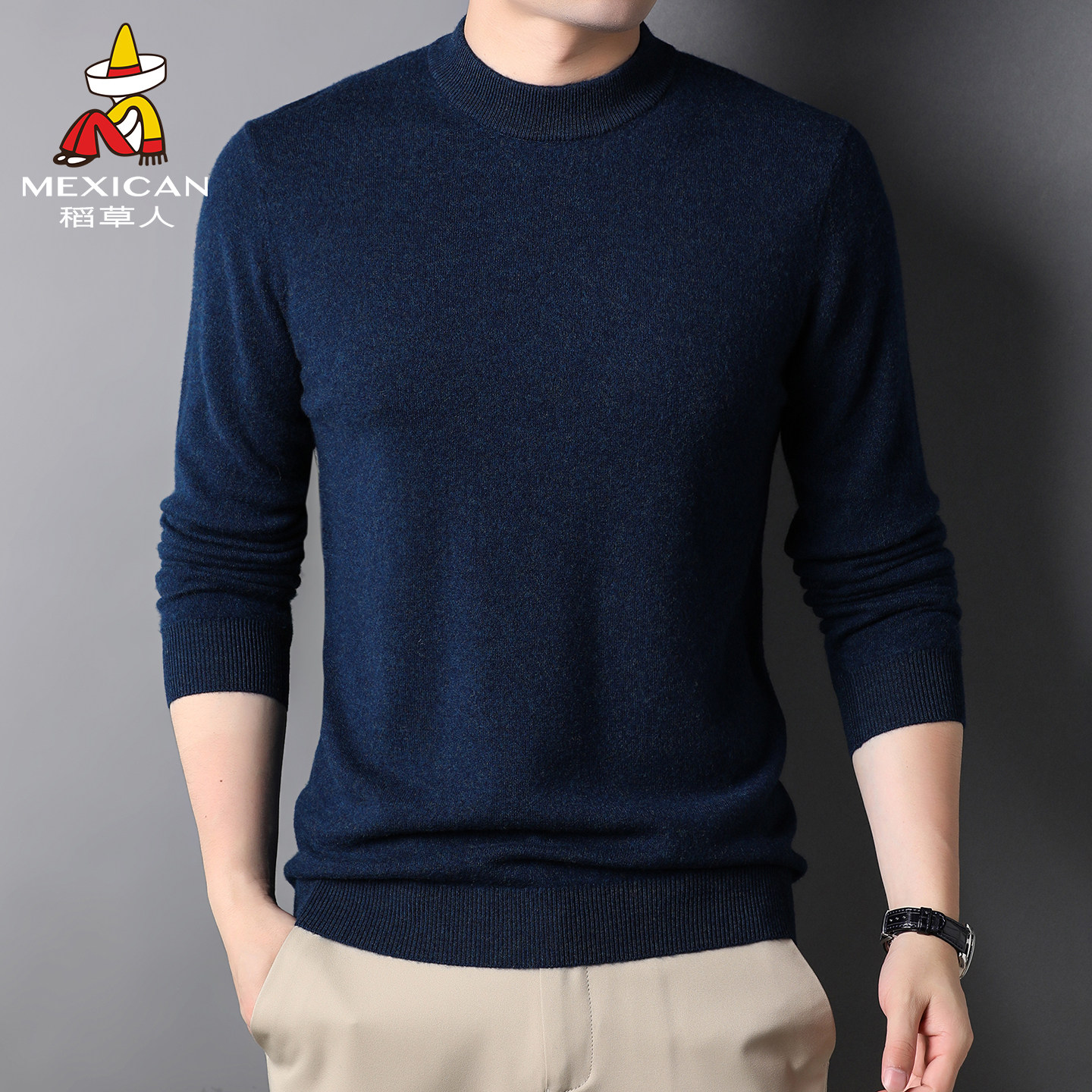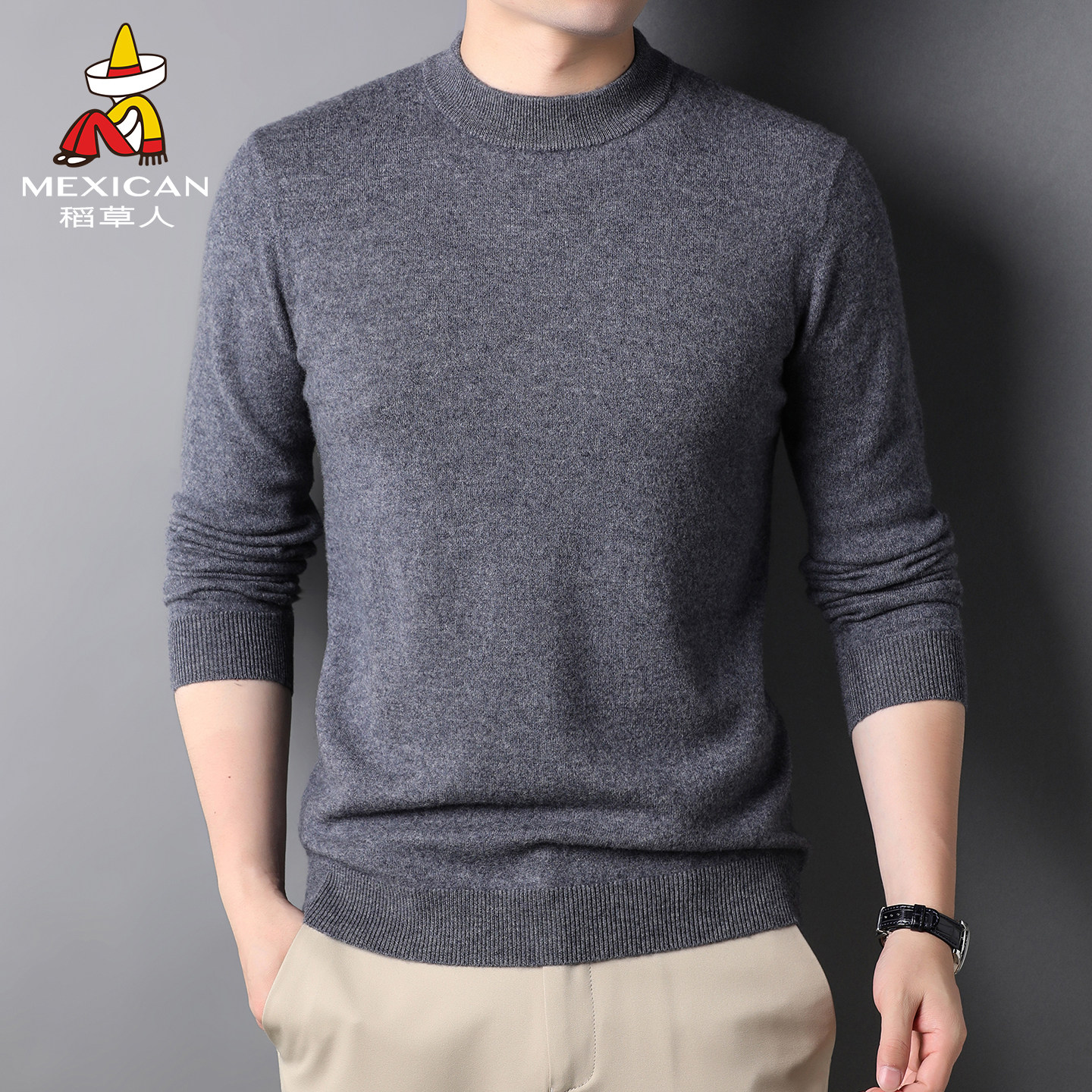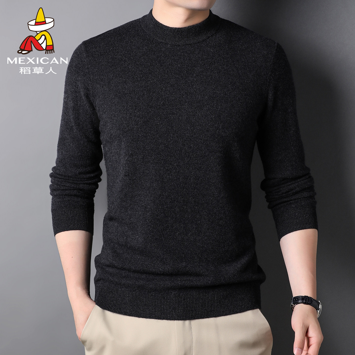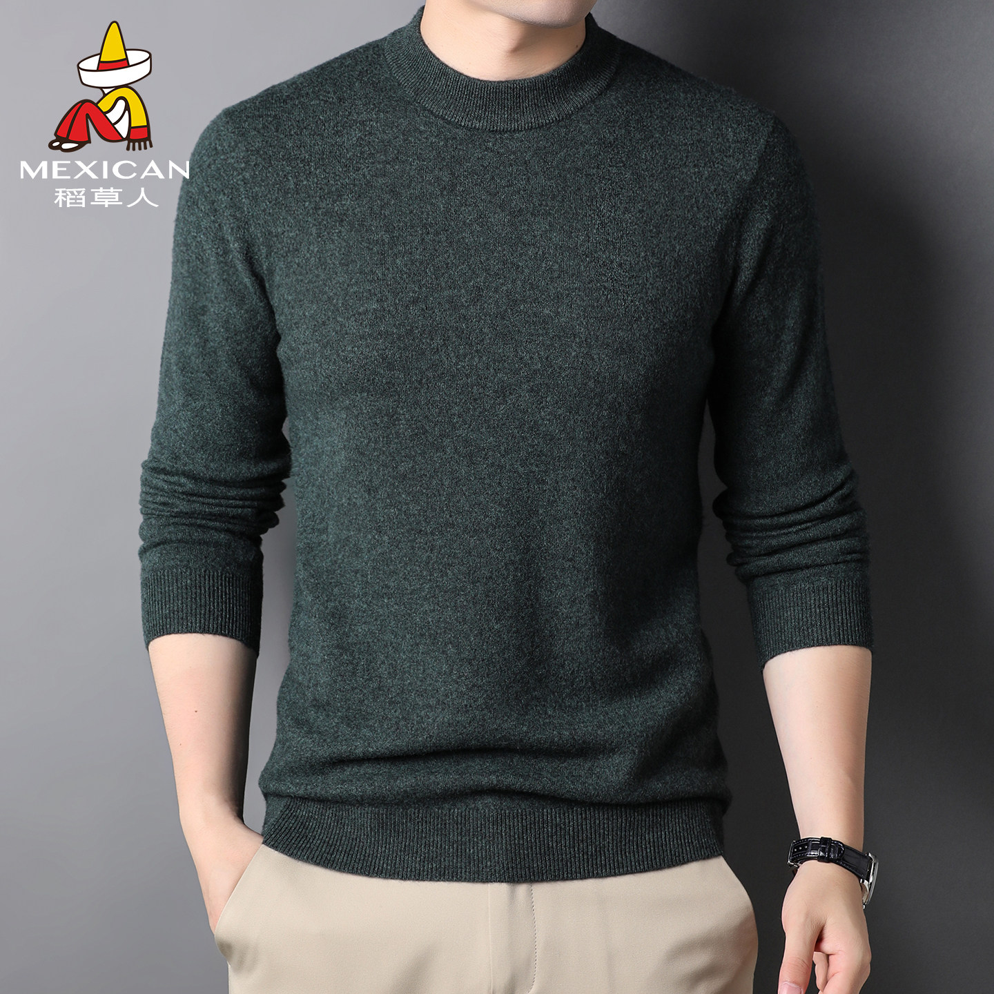 稻草人羊毛衫男100%纯羊毛加厚保暖半高领冬装休闲针织打底毛衣J