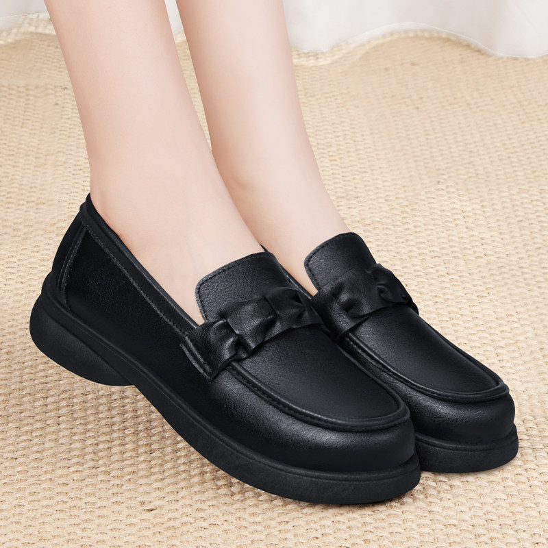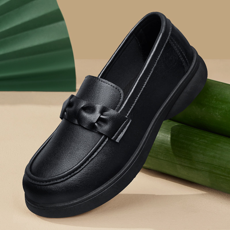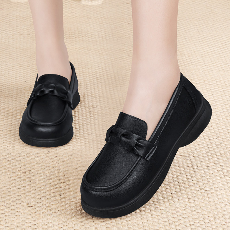肯德基防滑工作鞋女黑色鞋子上班不累脚软底舒适皮鞋2026妈妈单鞋
