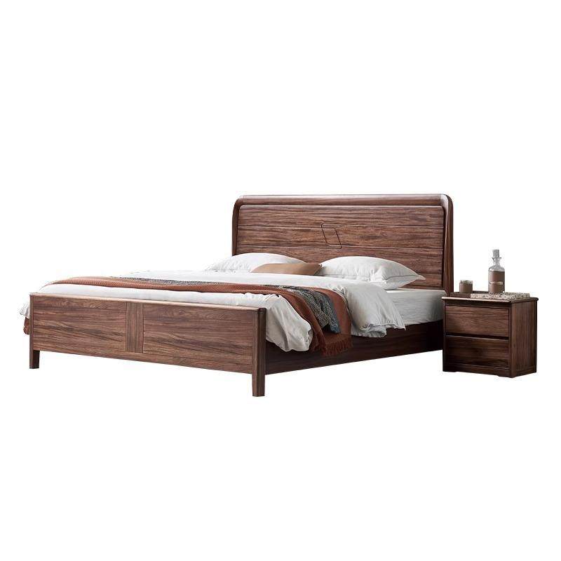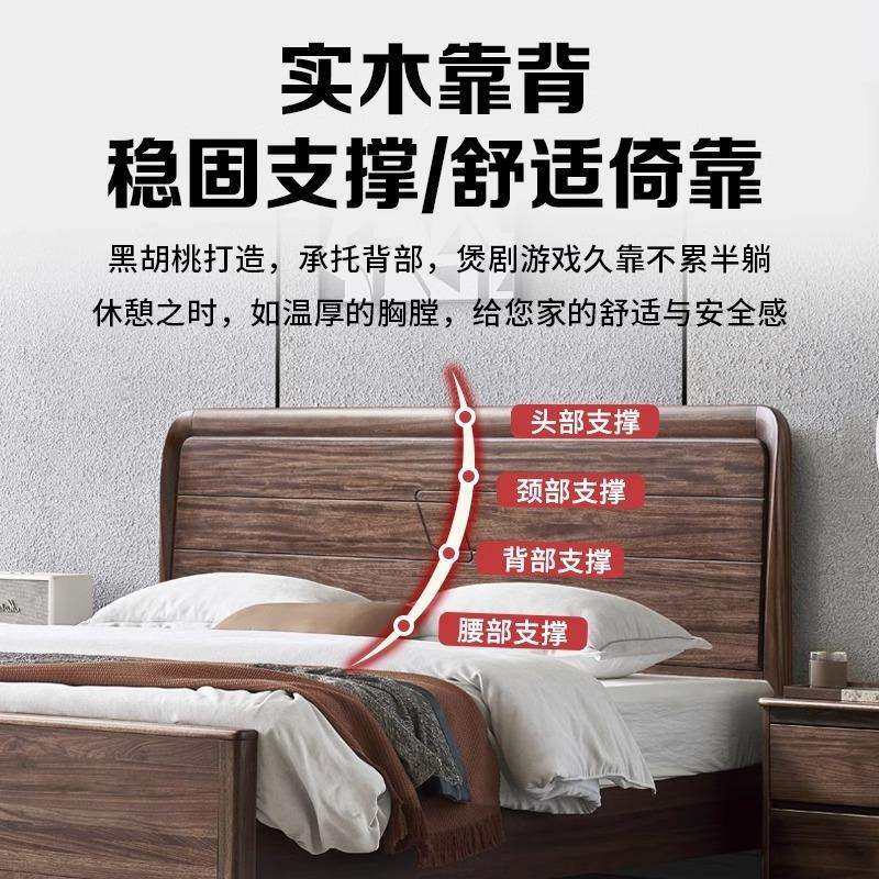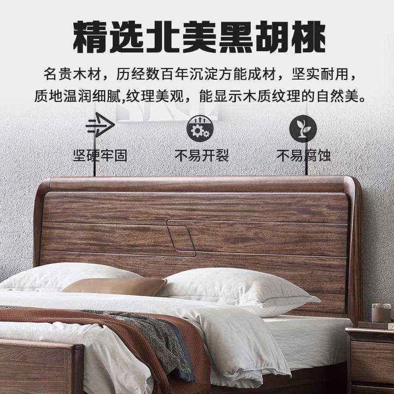 北美黑胡桃木实木床1.5m轻奢储物双人婚床1.8米新中式主卧双人床
