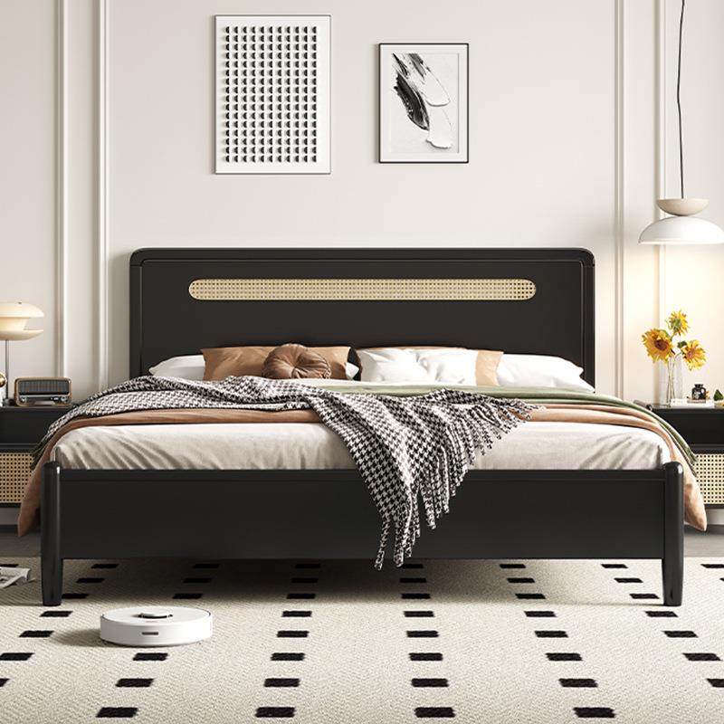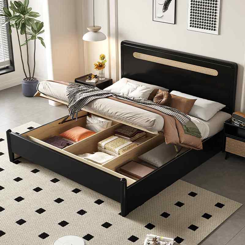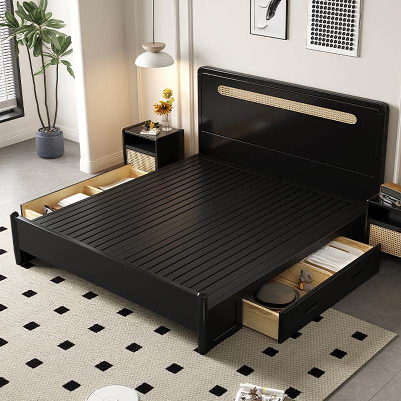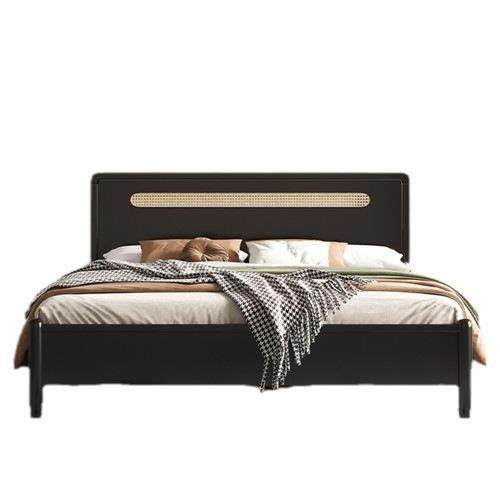 编藤实木床1.8m现代简约小户型1.5m家用单双人法式黑色储物型婚床