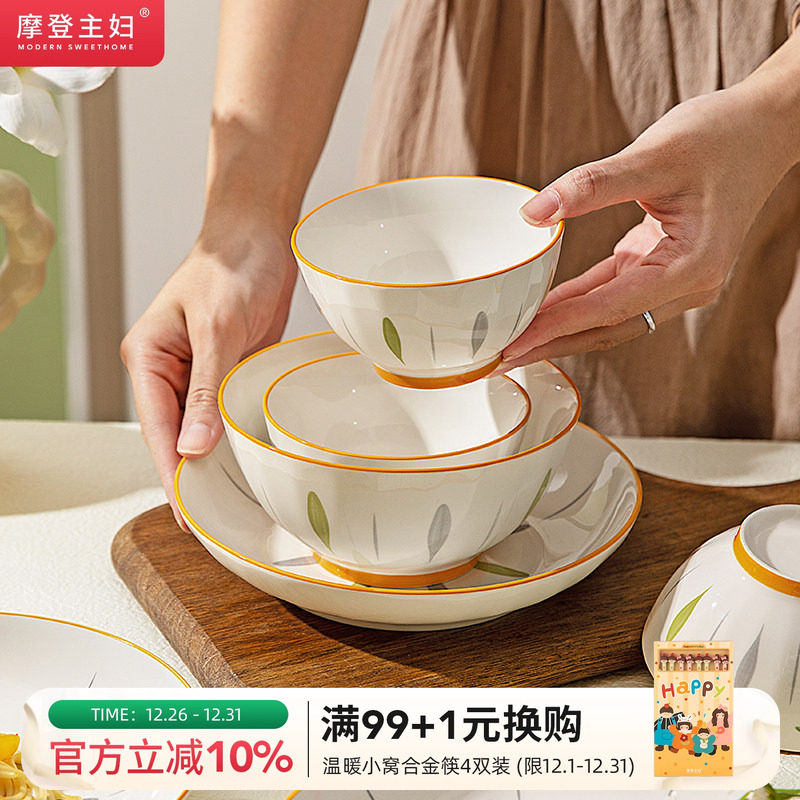 高级感碗碟套装家用2025新款简约碗盘乔迁碗筷陶瓷釉下彩餐具盘子