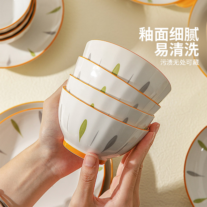 奶油风陶瓷碗家用卡通菜盘子可爱米饭碗汤碗釉下彩儿童餐具耐高温