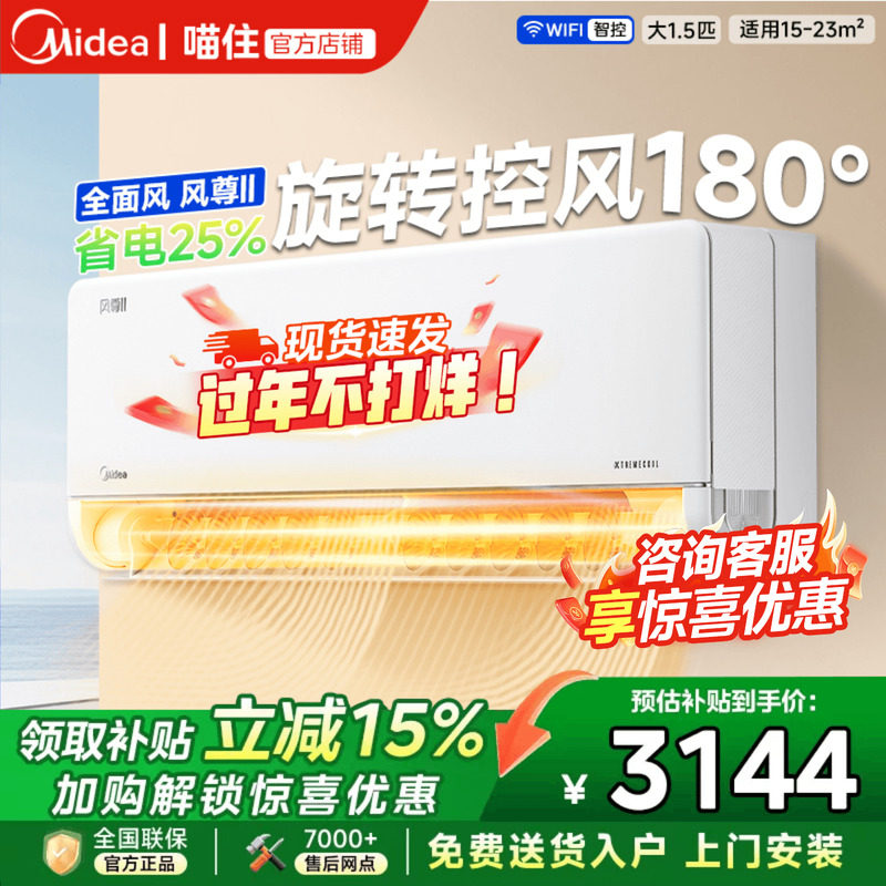 美的风尊二代PRO空调1.5匹2P挂机一级能效变频冷暖家用官方旗舰店