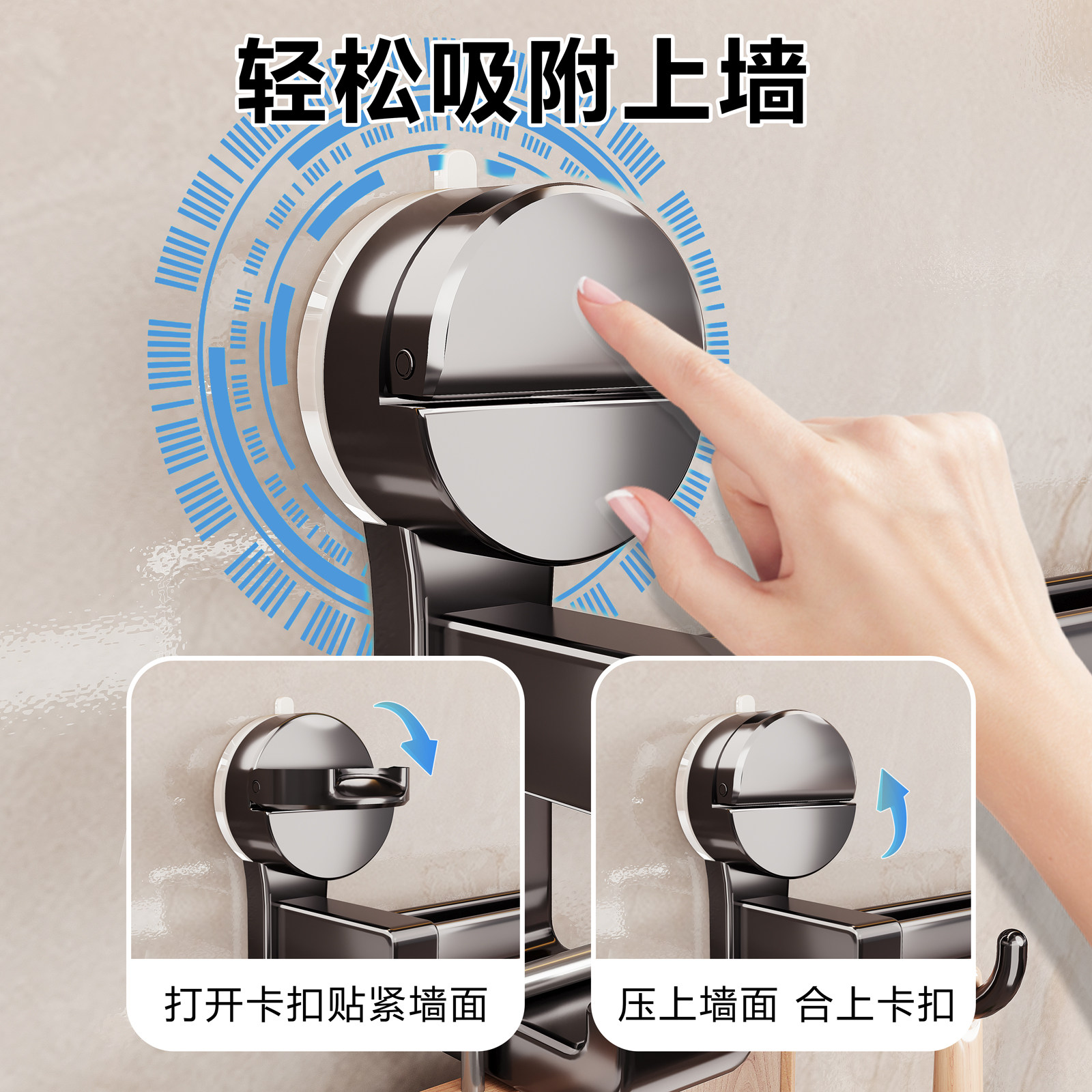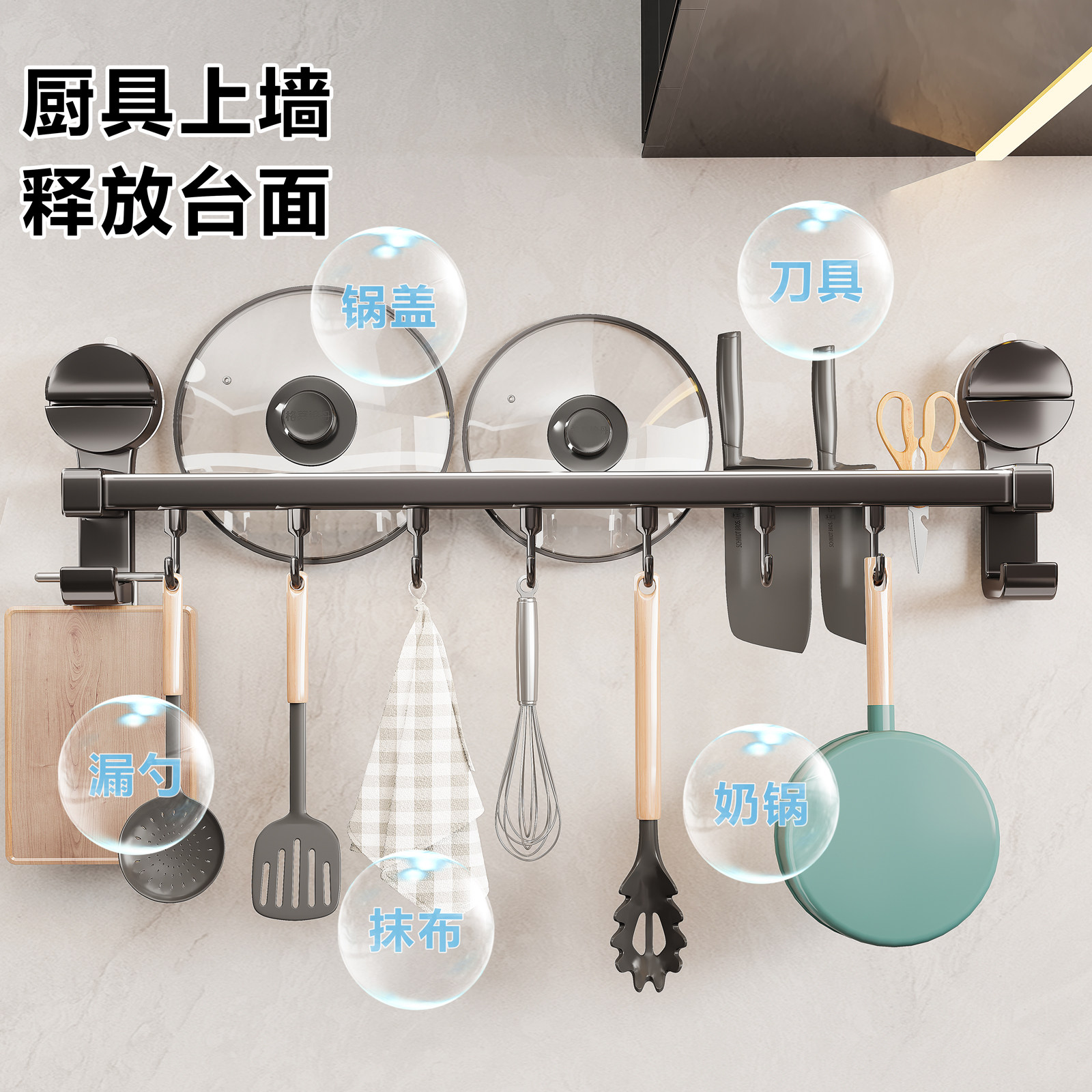 吸盘厨房置物架挂钩多功能免打孔挂杆锅盖勺子铲子刀架收纳架刀具