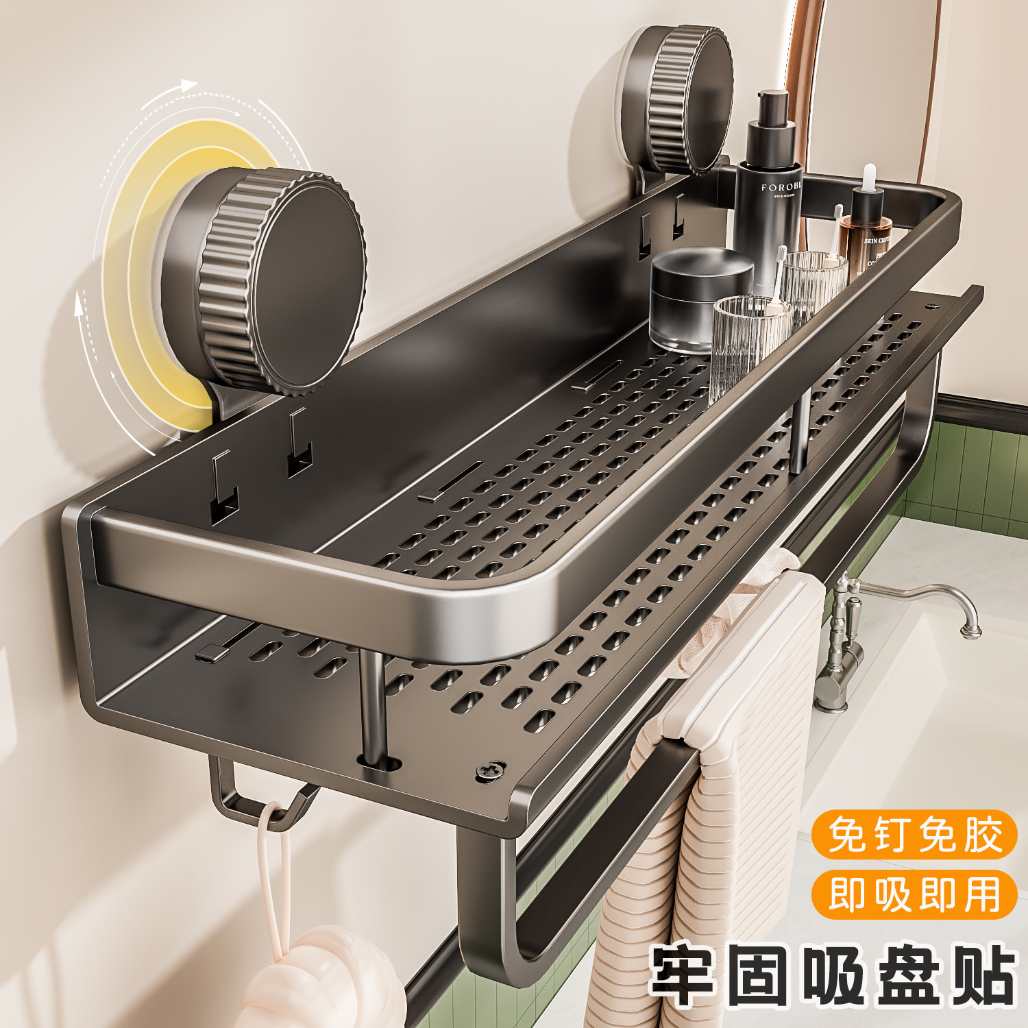 浴室置物架卫生间免打孔吸盘式厕所洗手台洗漱台洗澡间挂墙上收纳