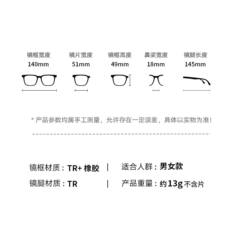 帕森经典黑框定制近视眼镜架女日常通勤百搭圆脸显瘦镜框男31001