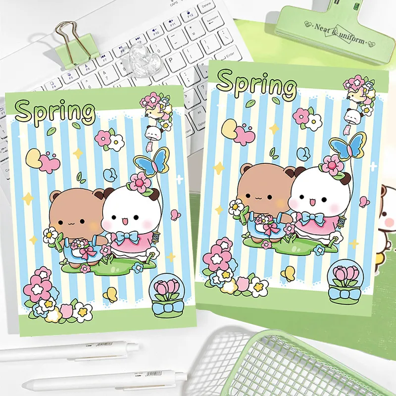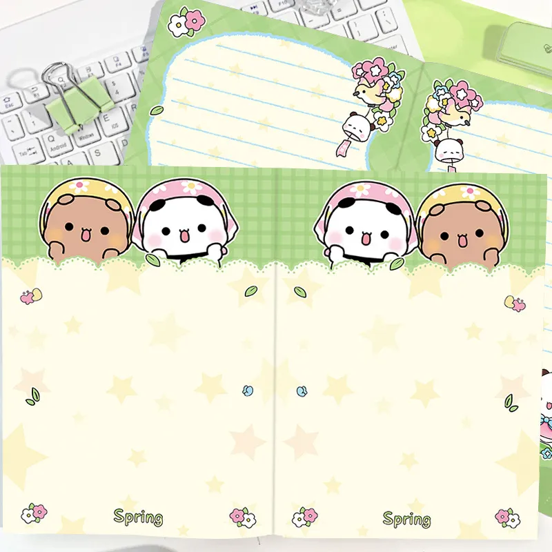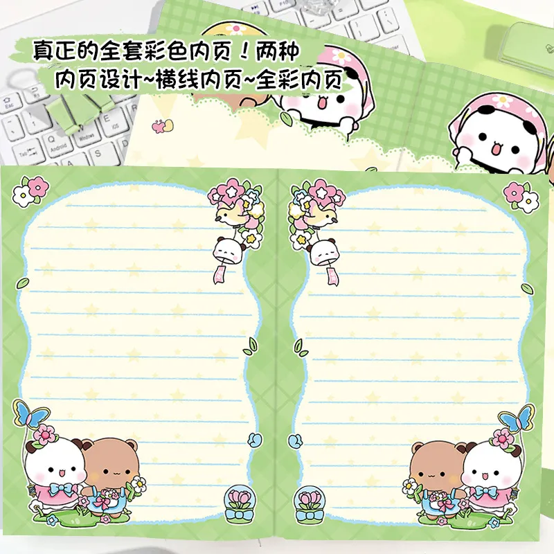 a5平摊本采花情侣熊彩页笔记本高颜值日记本卡通手账本子加厚