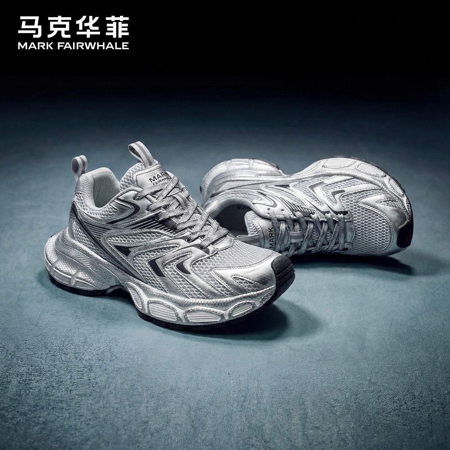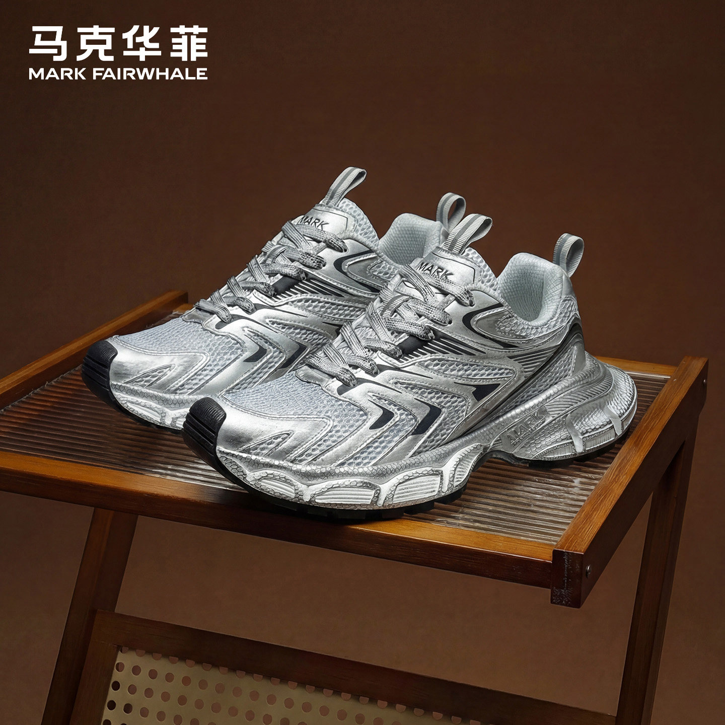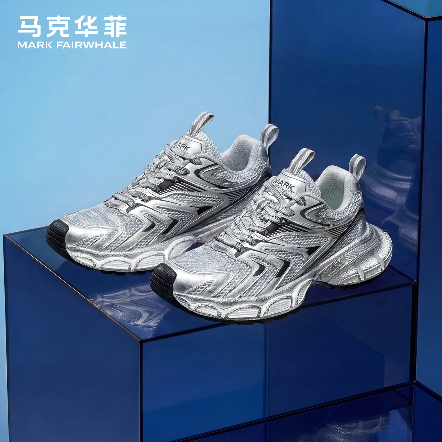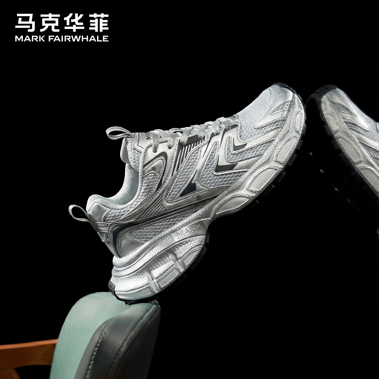 马克华菲男鞋2026新款老爹鞋男春季运动鞋男士增高鞋银色鞋子男款