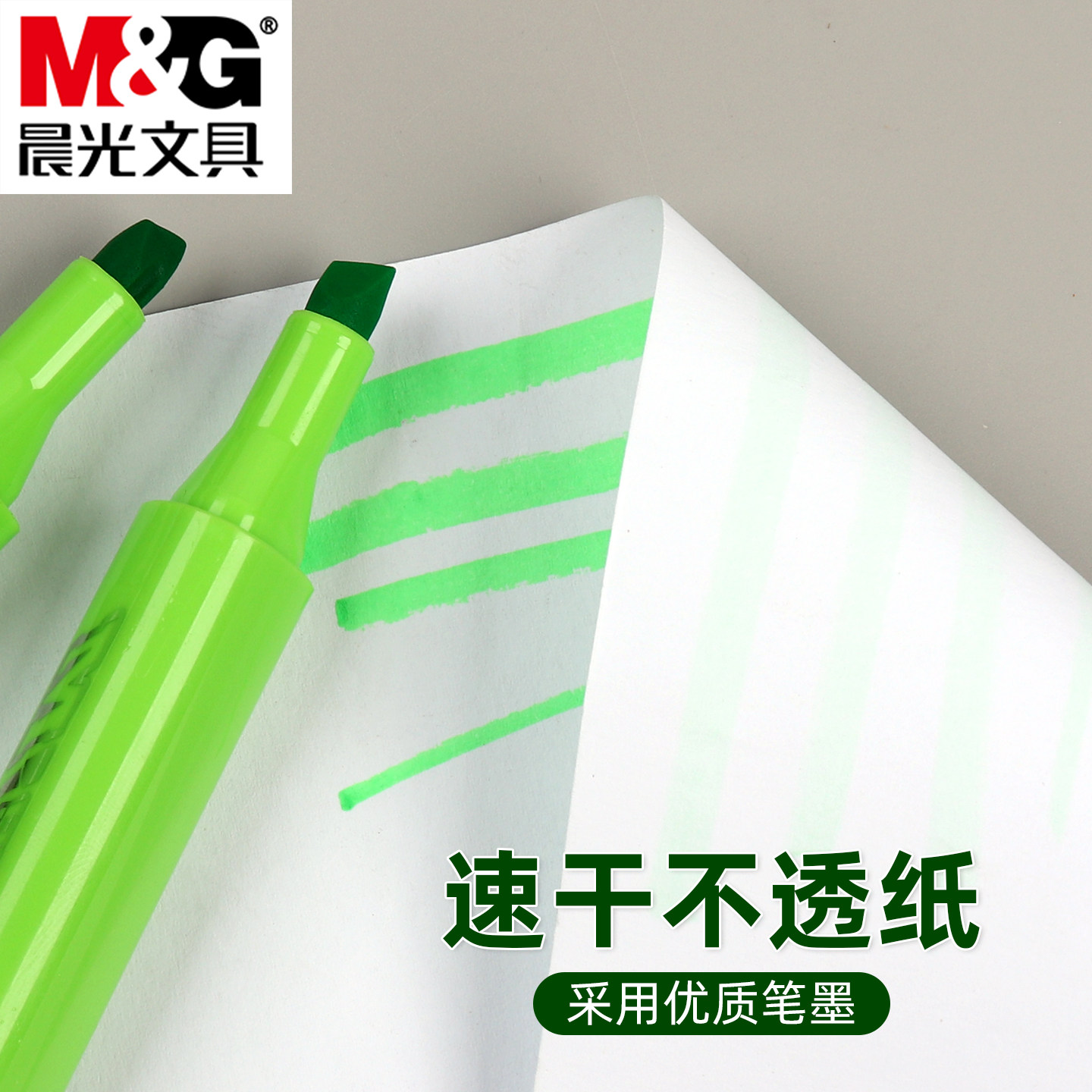 晨光绿色大容量荧光笔柔彩荧光标记笔学生用无味糖果色斜头记号笔彩色笔荧光粗划重点手帐笔专用做笔记初中