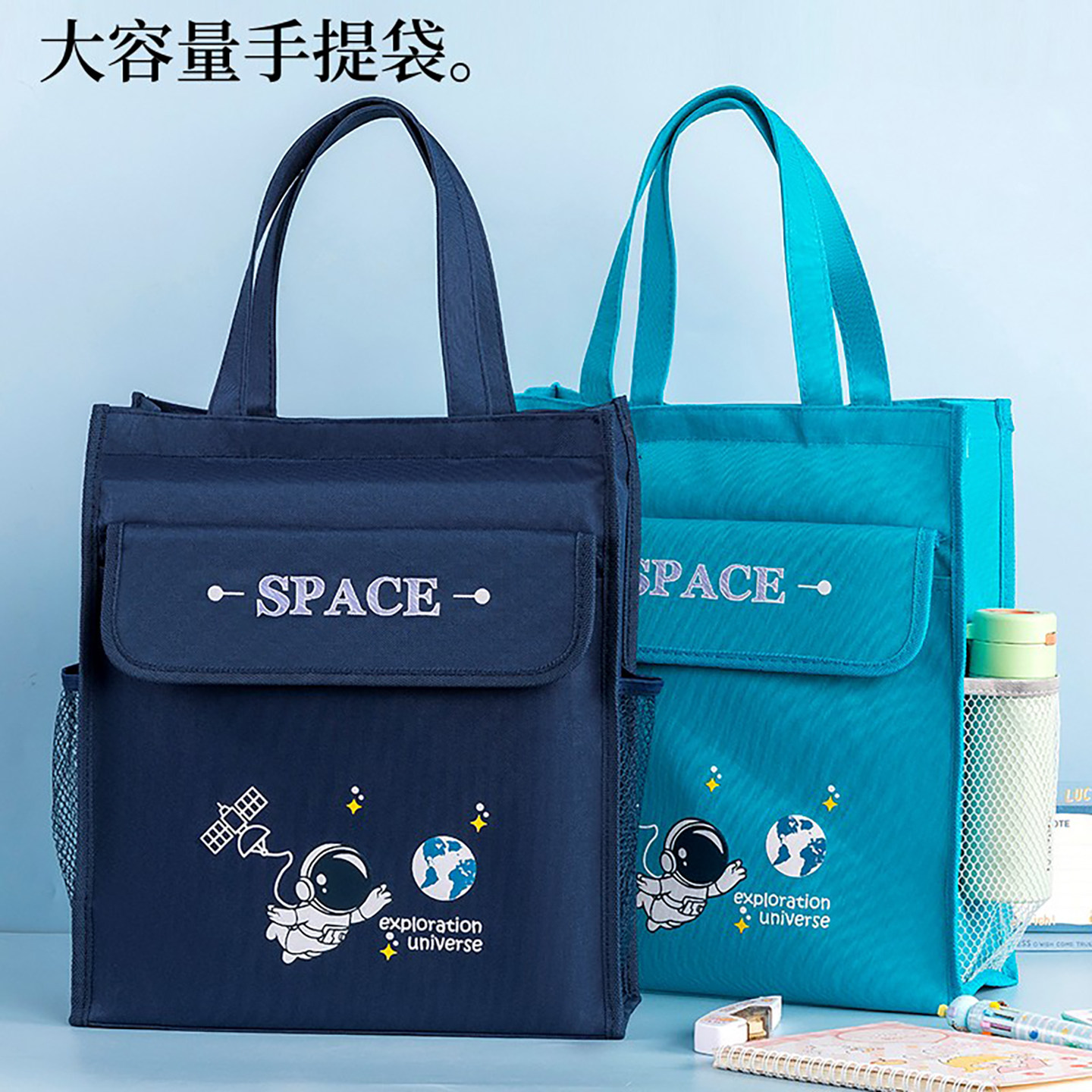 必能1133学生补习袋课本收纳袋科目袋手提拎书袋学生作业文件袋补习班袋大容量帆布袋子饭盒袋学生便携收纳袋